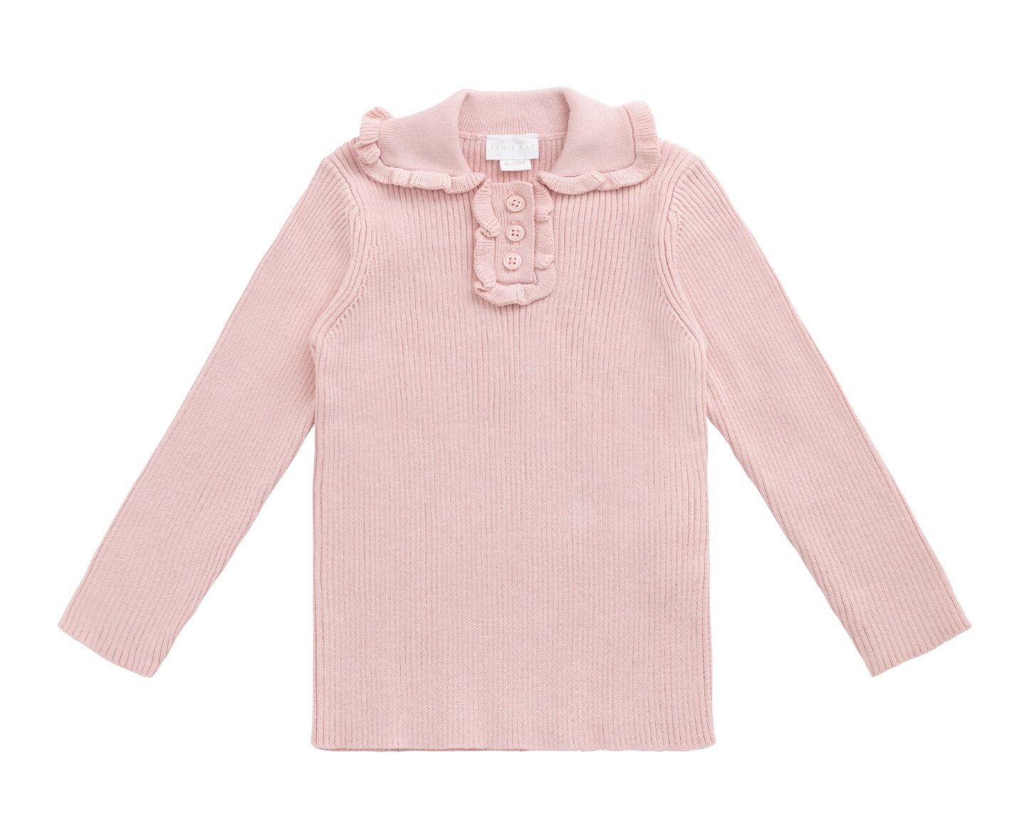 The Jamie Kay Cleo Top is a beautifully knitted piece in a soft blush pink hue, featuring a delicate ribbed texture and a dainty ruffled collar. With its classic button placket and timeless silhouette, this top adds a touch of elegance to your little one’s wardrobe—perfect for layering or wearing on its own.