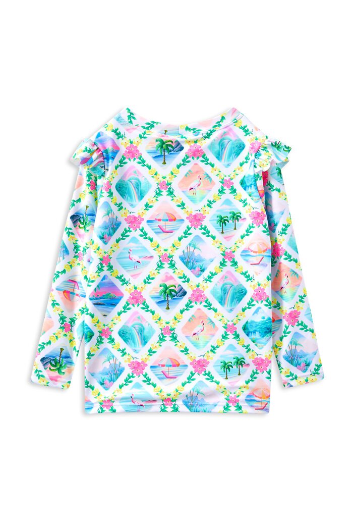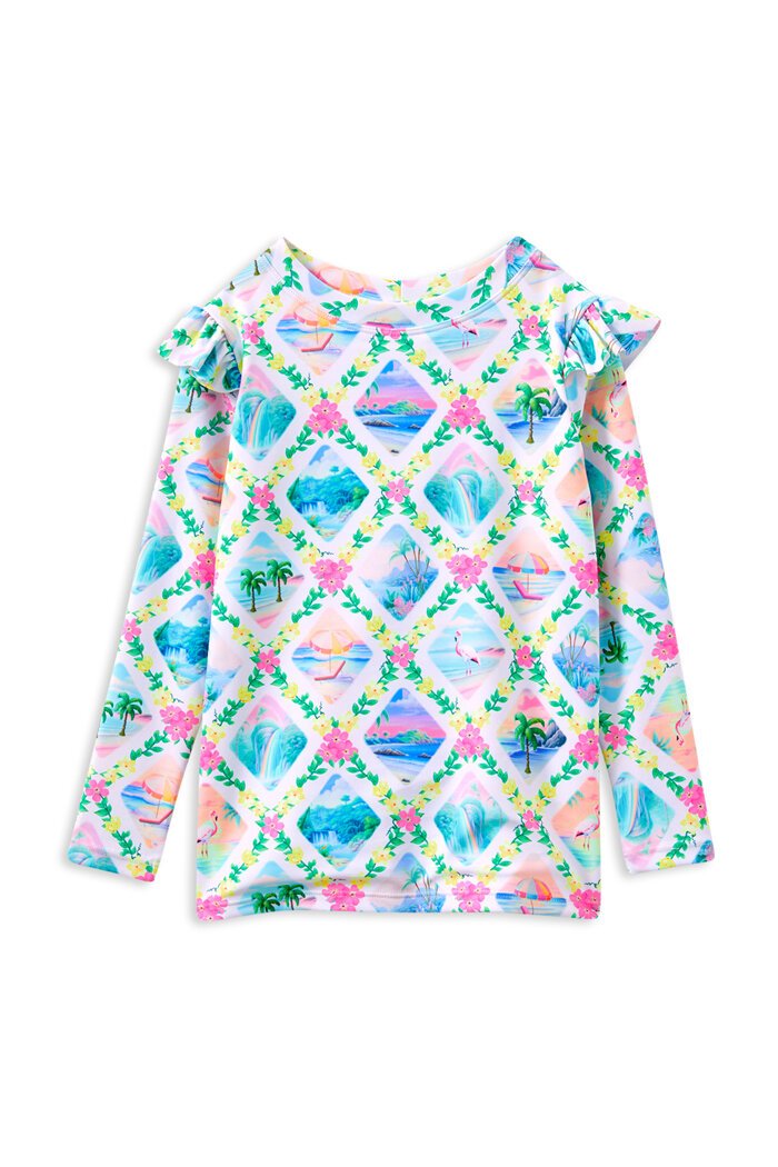 Milky Aloha Rash Vest. The Aloha Rash Vest is a must-have for summer adventures. Featuring a tropical all-over print and UPF 50+ fabric, it's the perfect blend of style and function for days spent poolside or at the beach. Easy to mix and match, pair it with our Aloha Swim Hat or Bikini for a coordinated and sun smart look.