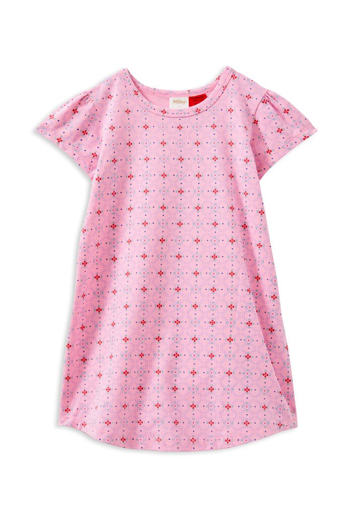 Milky Fleur Nightie is made for dreamy nights and lazy summer mornings. Featuring a soft pink base with a delicate all-over floral print, this nightie is crafted from breathable, stretchy cotton for maximum comfort. With short sleeves and a gently flared silhouette, it's the perfect choice for warm weather sleepwear, lightweight, cute, and easy to wear.