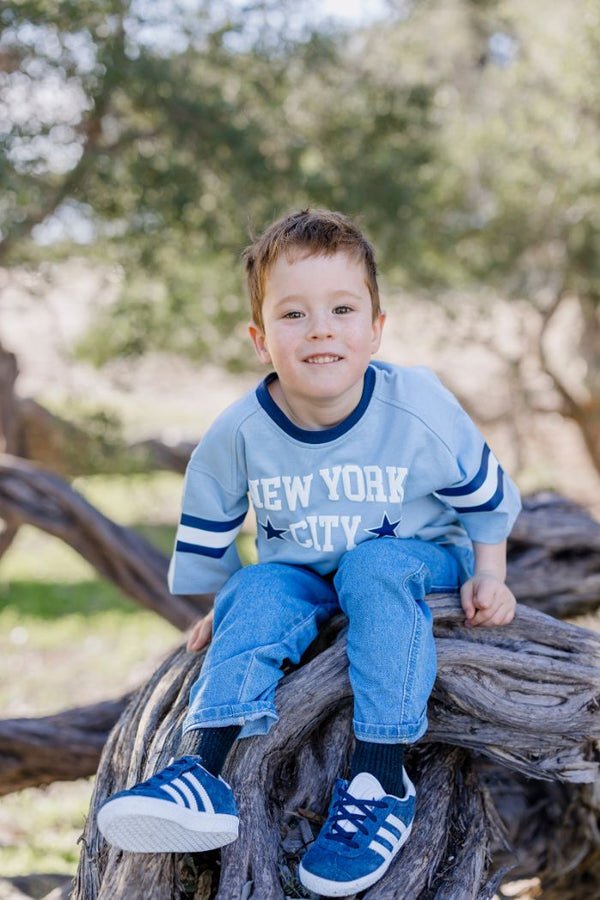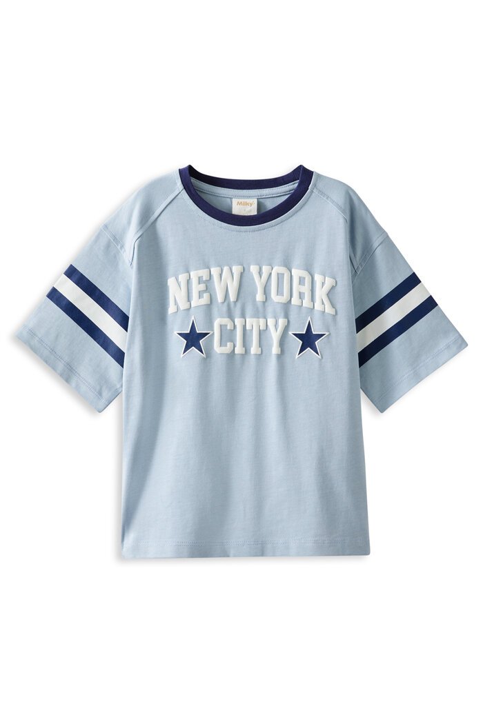 The Milky New York Tee is an oversized hero with sporty sleeve stripes and bold New York City lettering that brings instant fun to everyday outfits. Made from 100% rugby cotton jersey this fabric is thicker than your average tee so it’s warm durable and ready for kids who live life at full speed. Also available in a pink colourway for an easy colour swap. With a relaxed oversized fit and a comfy drop-shoulder shape it’s made for effortless layering. Pair it with leggings bike shorts denim and trackies for a look that works for weekends, kinder days and everything in between.