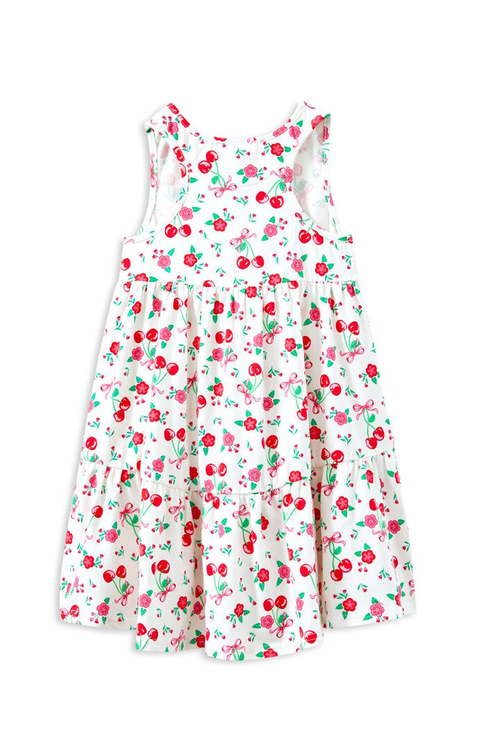 Milky Sweet Cherry Dress is as sweet as summer itself. Featuring a playful all-over print of cherries and bows on a crisp white base, this racerback dress is lightweight, twirly, and perfect for warm-weather fun. With a tiered skirt for extra movement and an easy pull-on fit, it's an ideal pick for parties, park days, or cherry-picking adventures.
