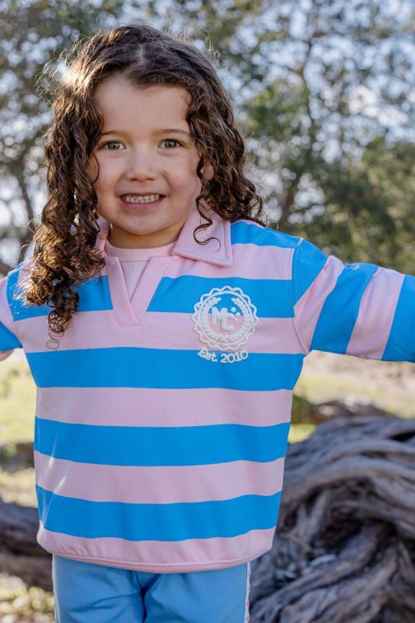 Add a pop of personality to winter dressing with the Milky Ziggy Stripe Sweat. Featuring bold pink and blue block stripes and a vintage-inspired collar, this sweat brings playful energy to chilly days. Made from soft unbrushed fleece with ribbed cuffs and hem, it’s warm, comfy, and ready for action. The chest badge detail adds a sporty edge, while the relaxed fit keeps things easy.