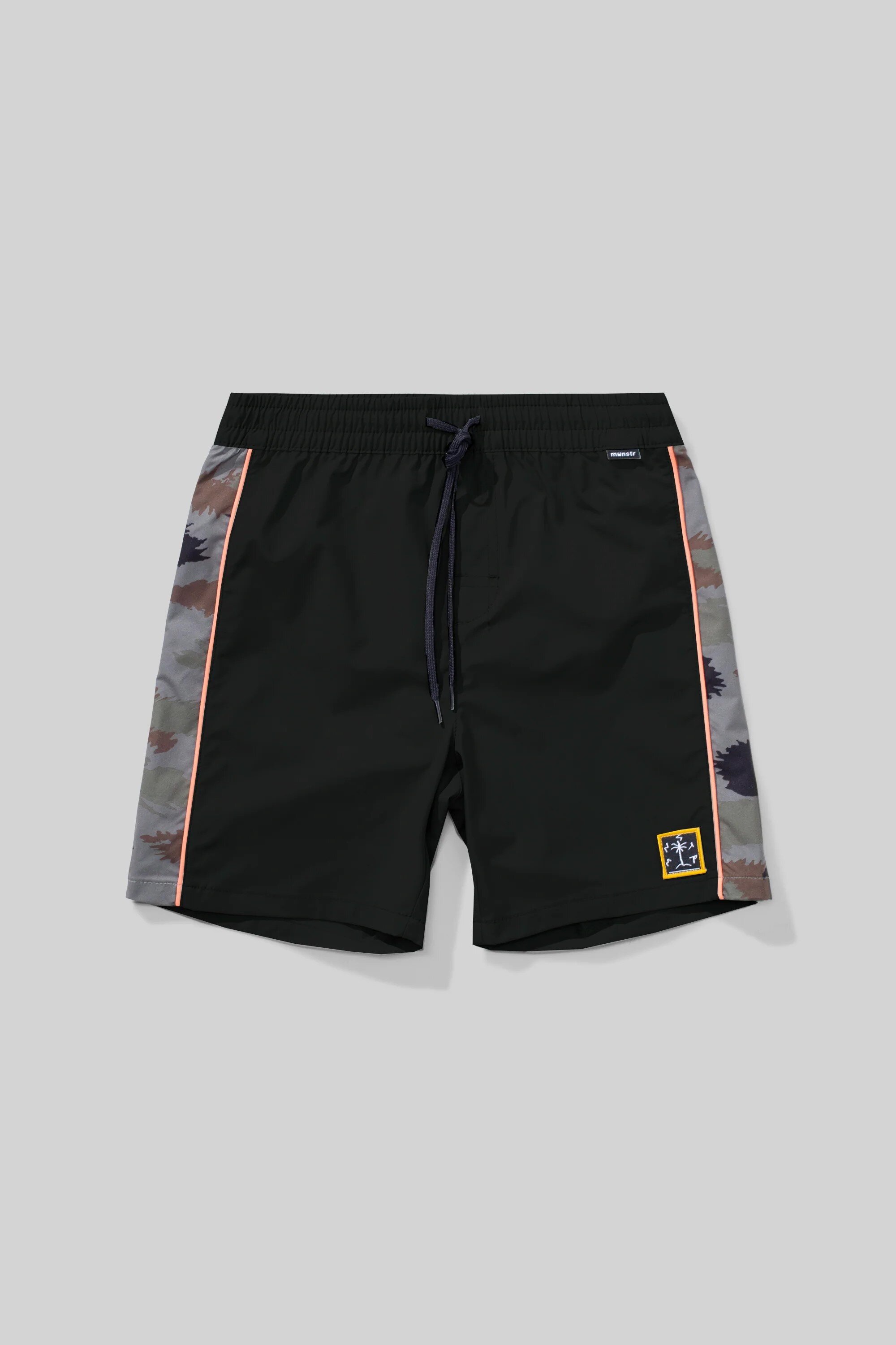 The Munster surfallday board short is a Nylon Stretch Board short with a Camo Panel