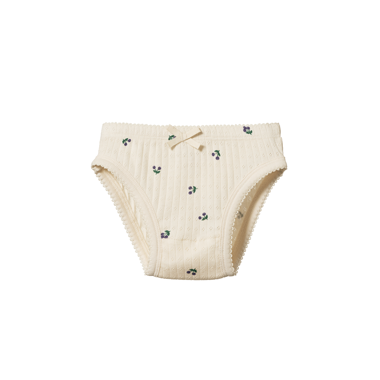A classic style in pure organic cotton. Comfortable underpants with a soft elastic waistband, cotton picot stitching around legs and a sweet bow at waist. To minimise shrinkage, this fabric has been pre-washed.