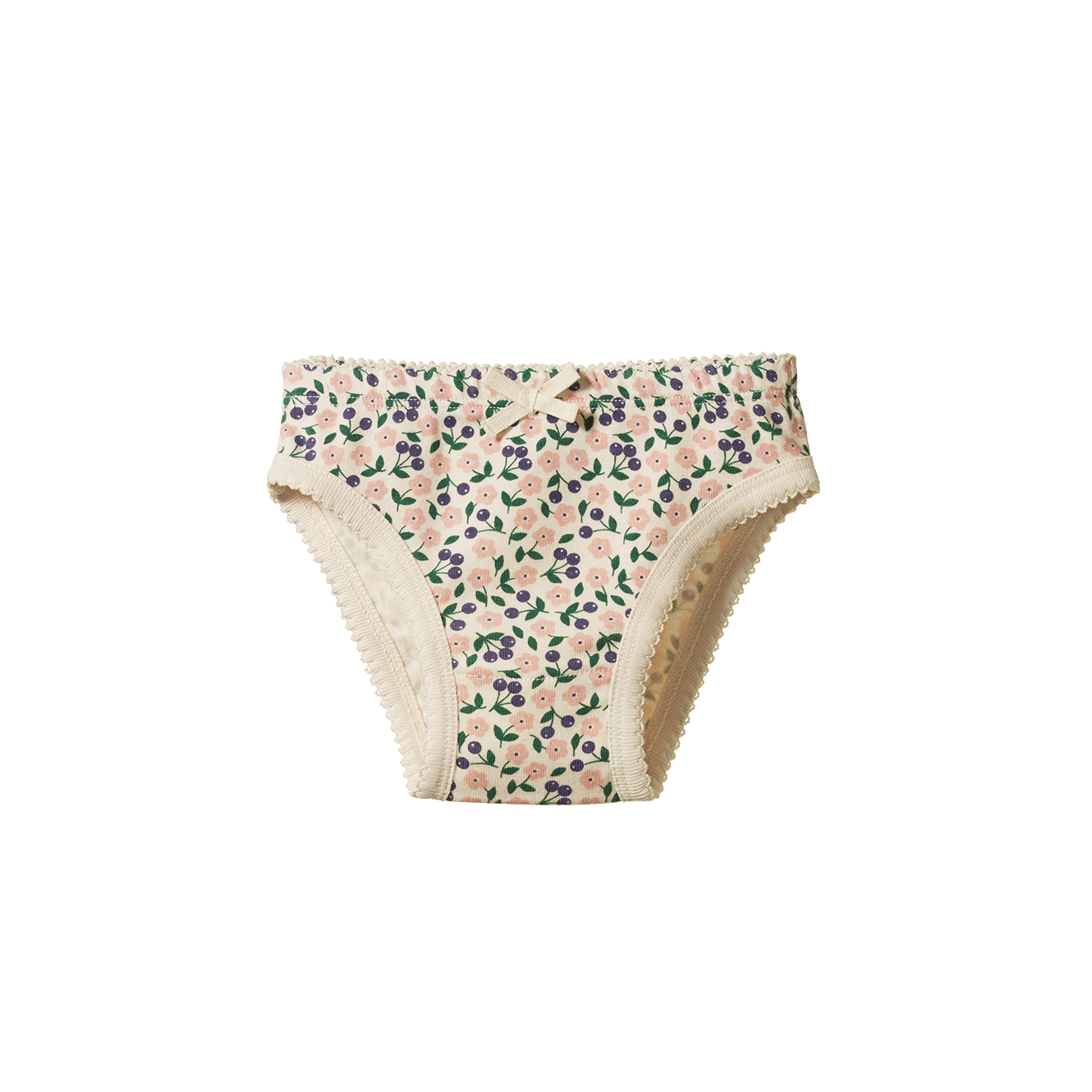 A classic style in pure organic cotton. Comfortable underpants with a soft elastic waistband, cotton picot stitching around legs and a sweet bow at waist. To minimise shrinkage, this fabric has been pre-washed.