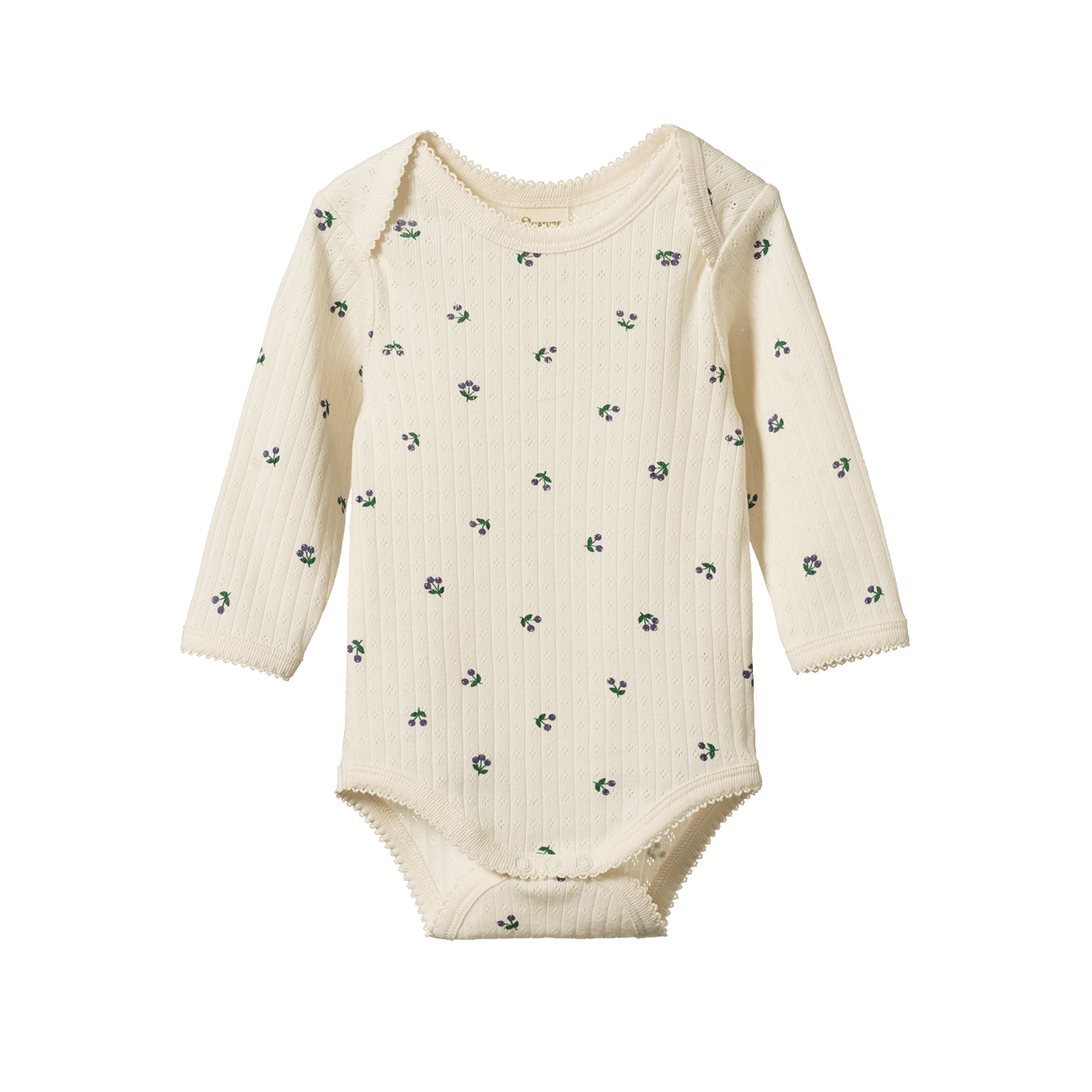Classic style bodysuit made in beautiful pointelle fabric. This delicate open weave fabric has a nostalgic quality and is super soft and stretchy, making it the perfect fabric for little ones. Featuring easy snap domes and an envelope neck for easy changing.