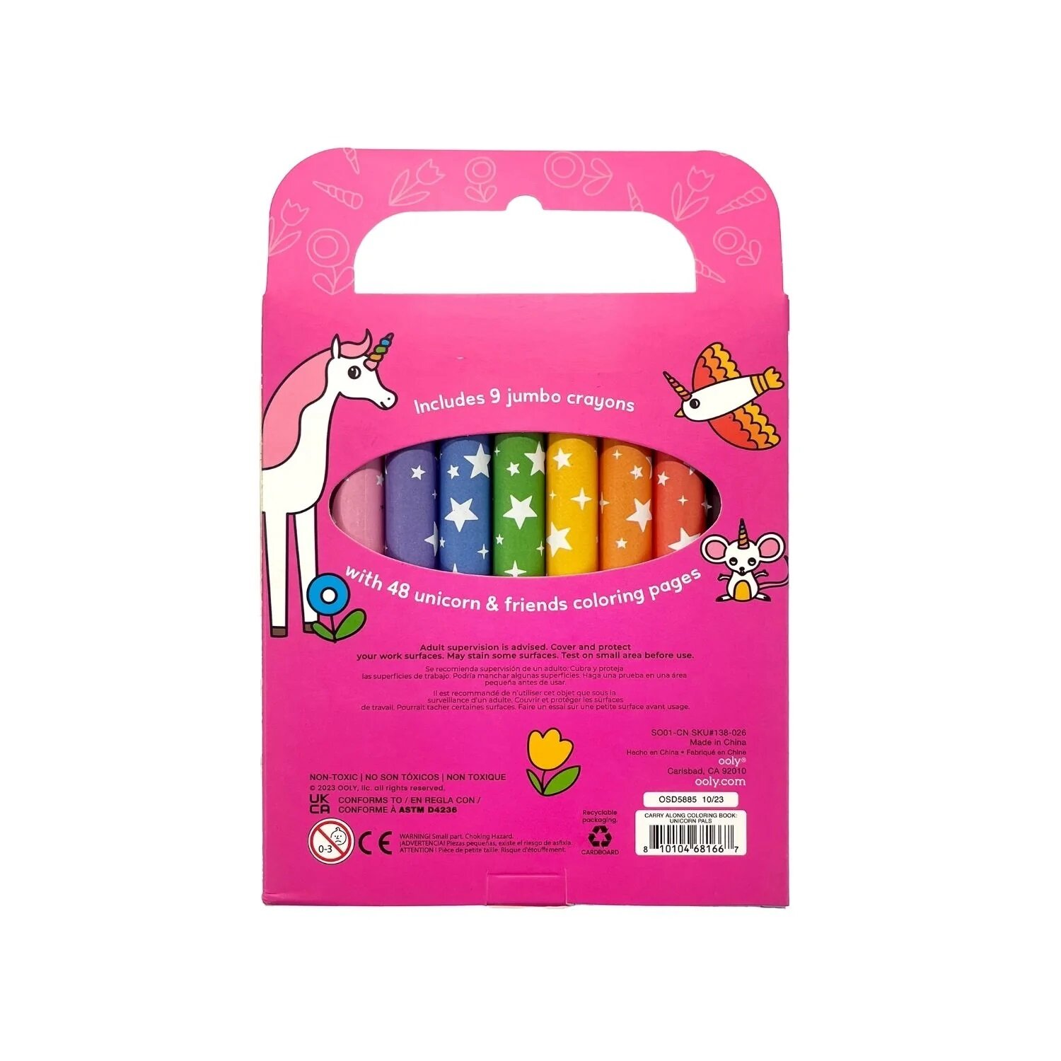 Designed with a take-along handle, this colouring set includes 48 pages of illustrations and 9 jumbo crayons—everything you need in one tidy package.