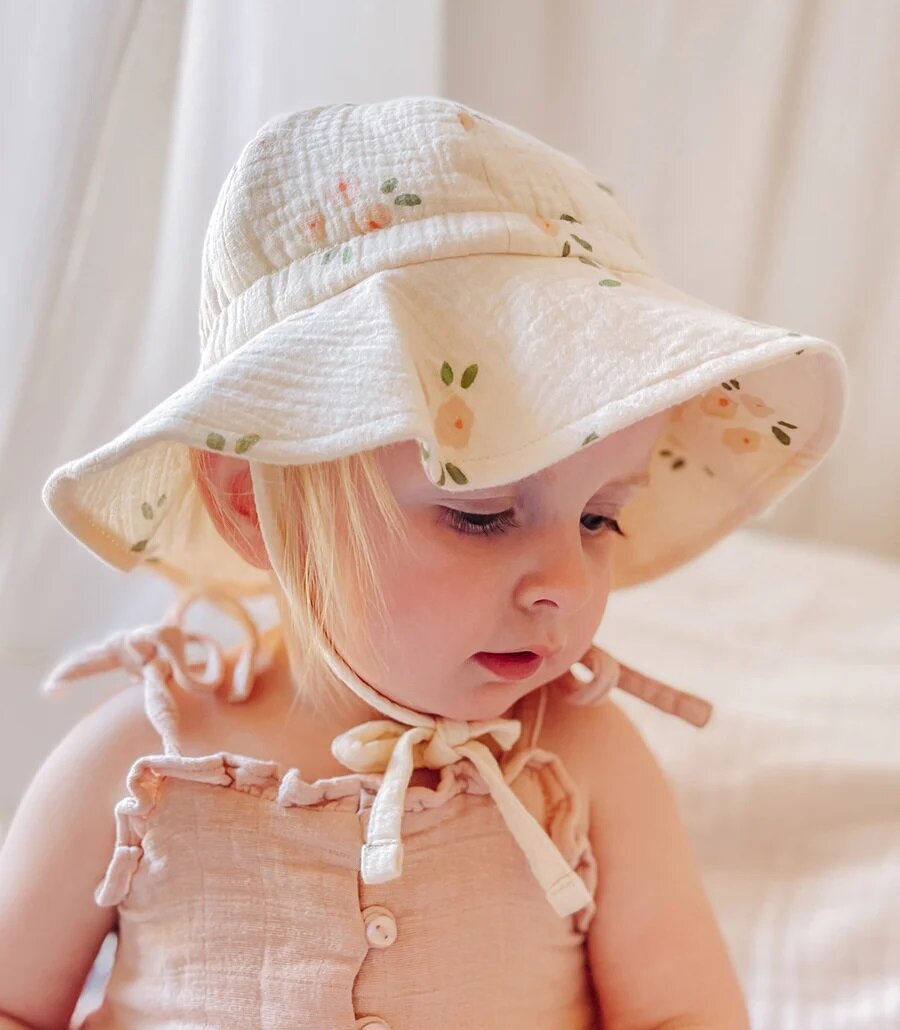 This adorable hat is made from 4 layers of GOTS certified organic cotton muslin.