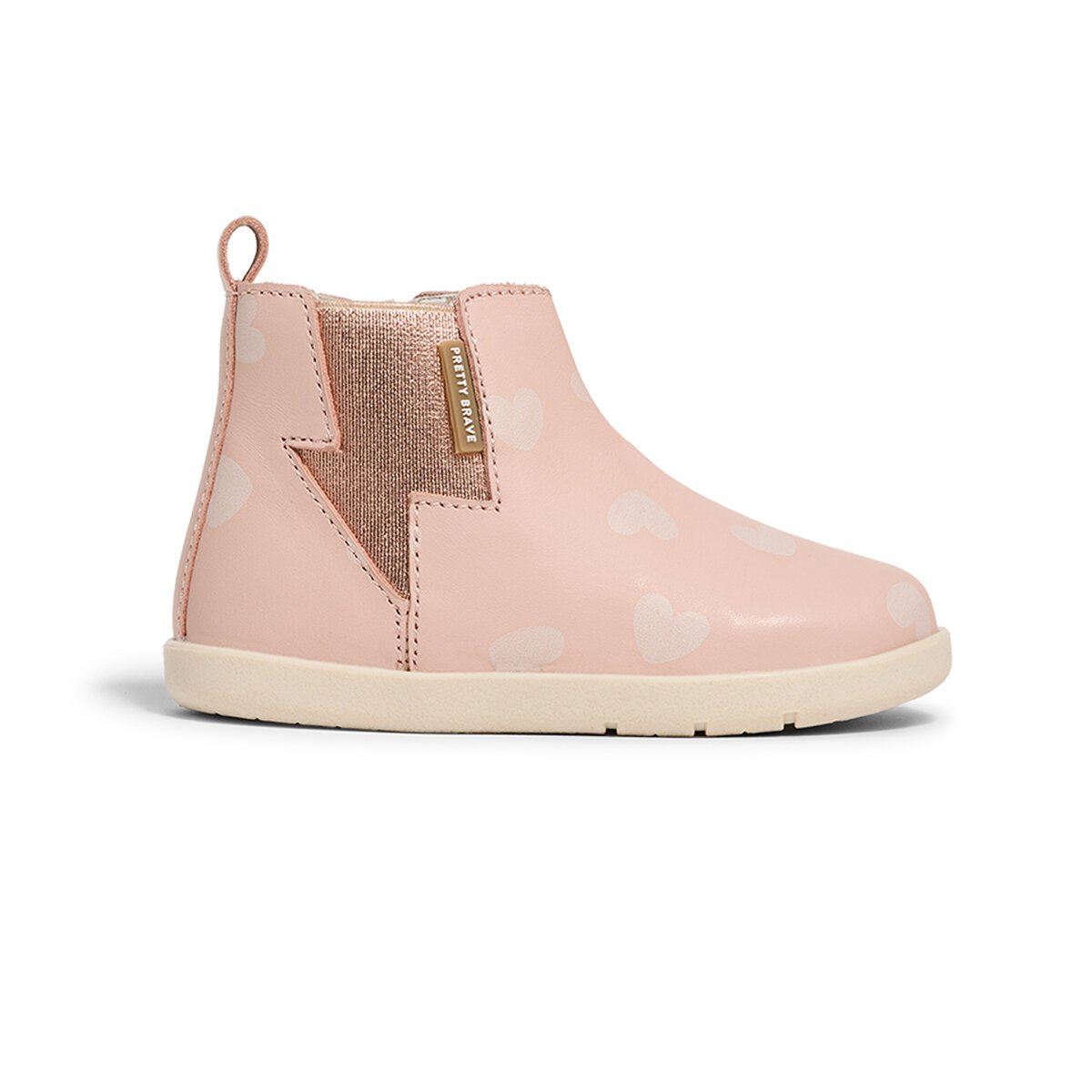 Say hello to the Bolt - the ultimate first boot by Pretty Brave that is perfect for little movers. Designed for kids gaining their confidence walking, the Bolt features a playful lightning bolt detail on the side and is crafted from genuine leather with a breathable lining, padded ankle, and flexible rubber sole. Double Velcro straps and a rear pull tag make getting out the door quick and fuss-free. Podiatrist approved for healthy foot development.