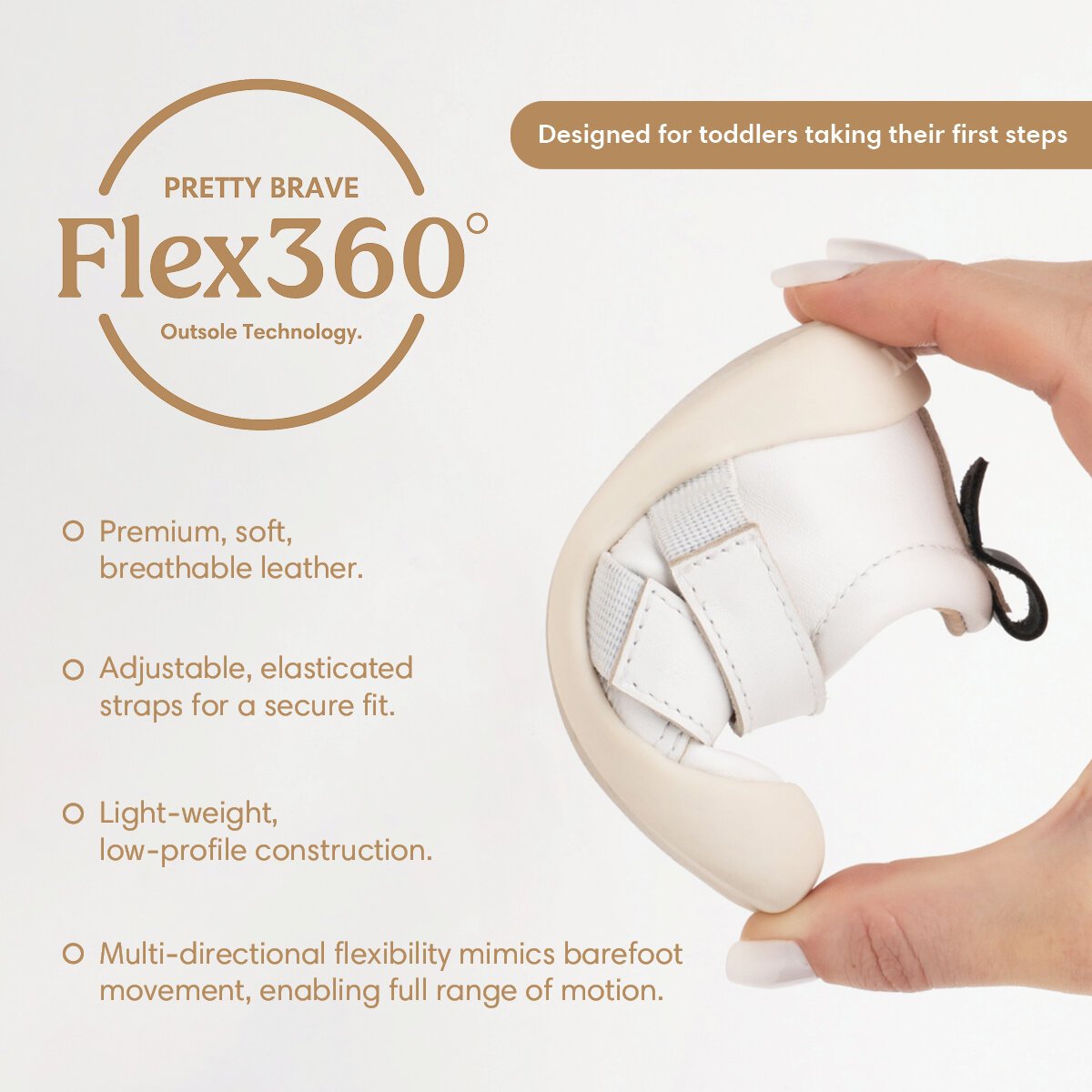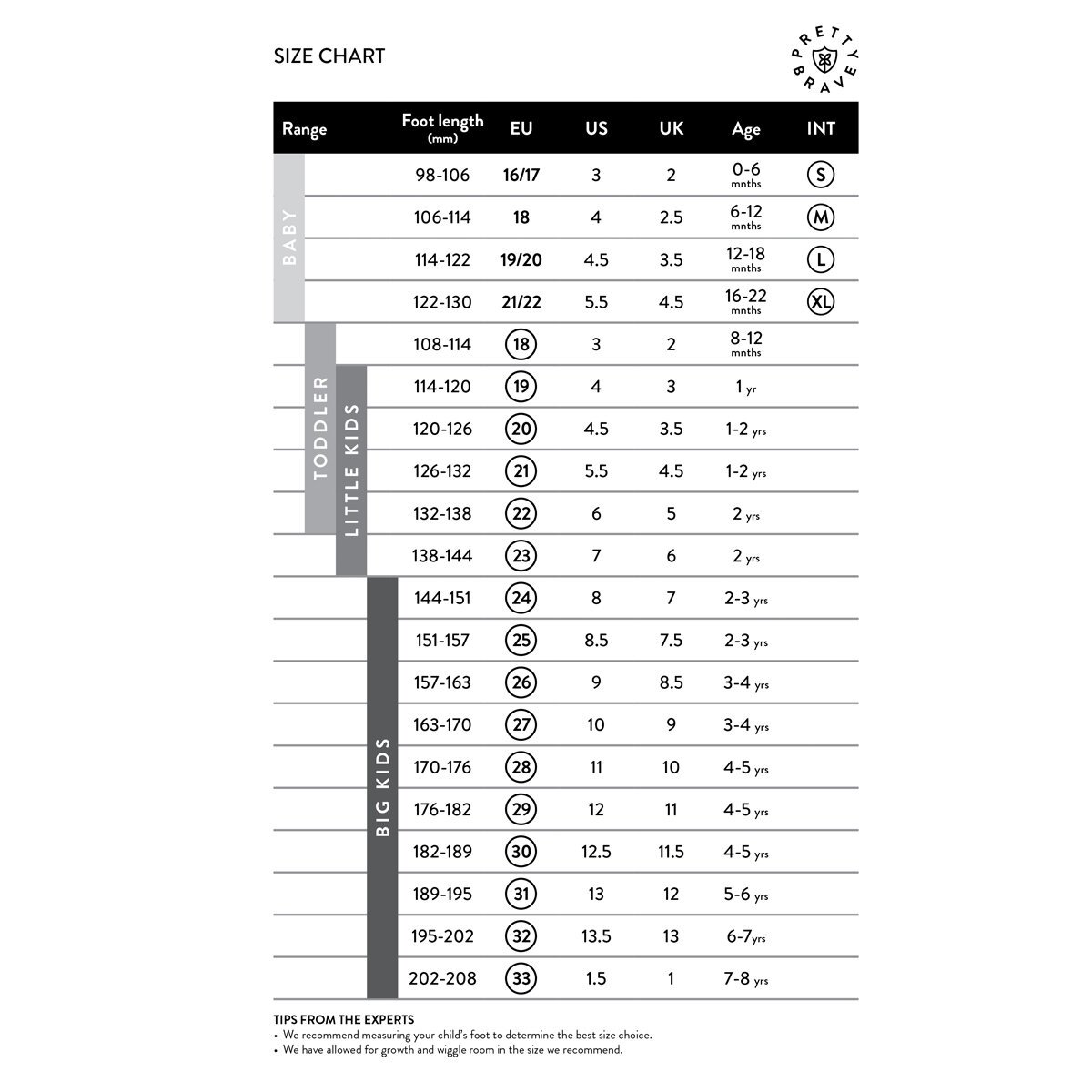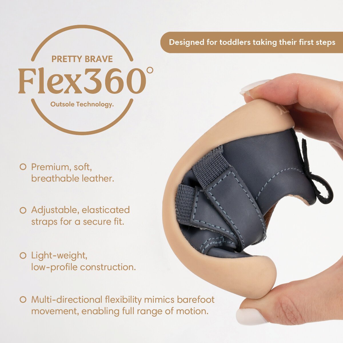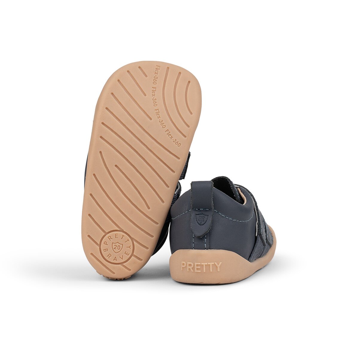 Part of the all-new Pretty Brave Toddler Range comes Toto - designed to support little ones as they take their very first steps. Created especially for the crawling-to-walking stage, Toto is crafted from premium leathers and features a lightweight, flexible design that moves with growing feet. The custom Flex 360 degree outsole promotes natural movement, splaying and comfort, while padded ankle support and double Velcro straps ensure a secure fit. With easy foot access and a secure fit, this style helps make the step from crawler to walker that much easier.