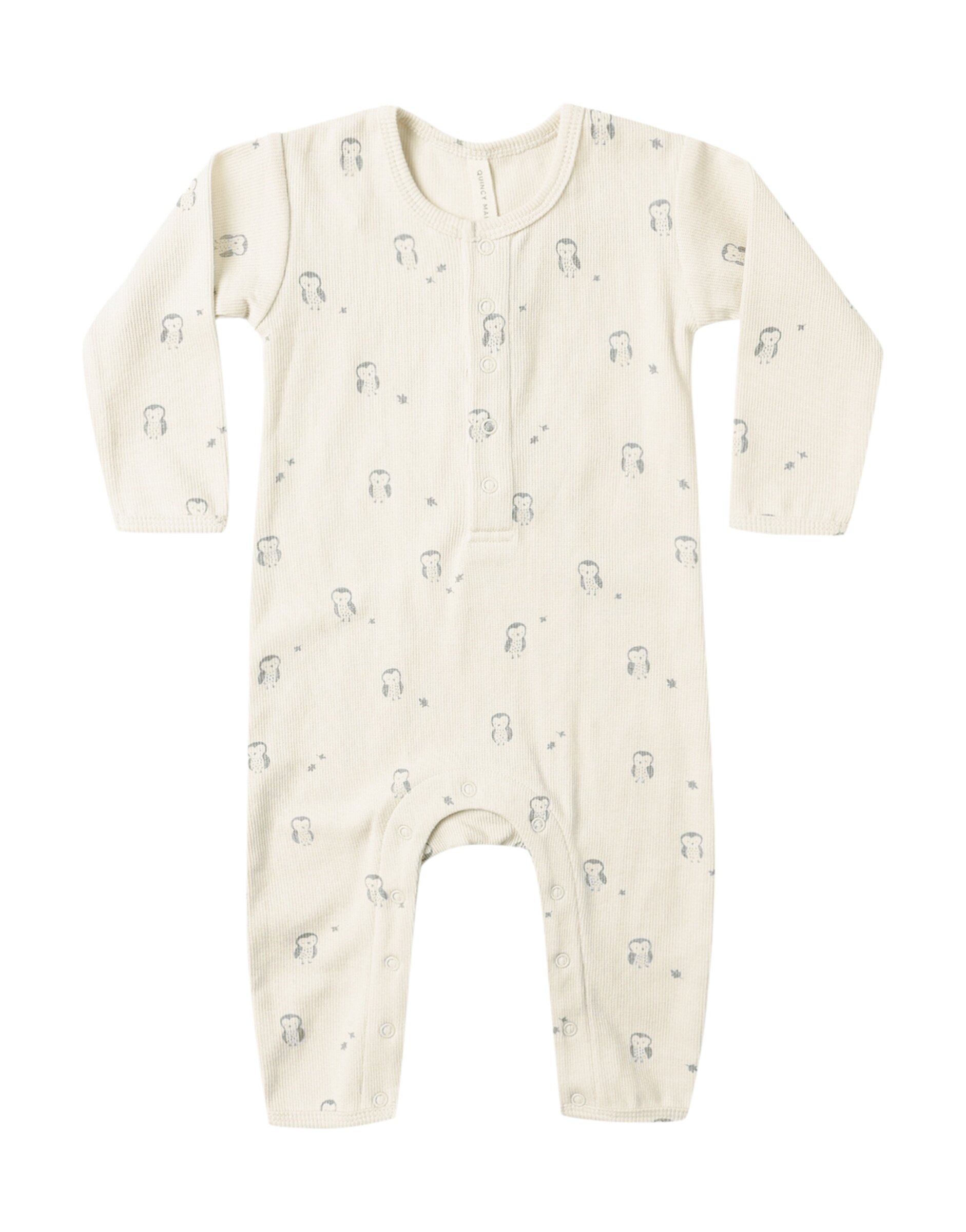 The Quincy Mae slim-fit rib knit jumpsuit has just the right amount of stretch to grow with your little one. Featuring front snaps and inseam snaps on sizes 0-3M - 18-24M for easy changes.