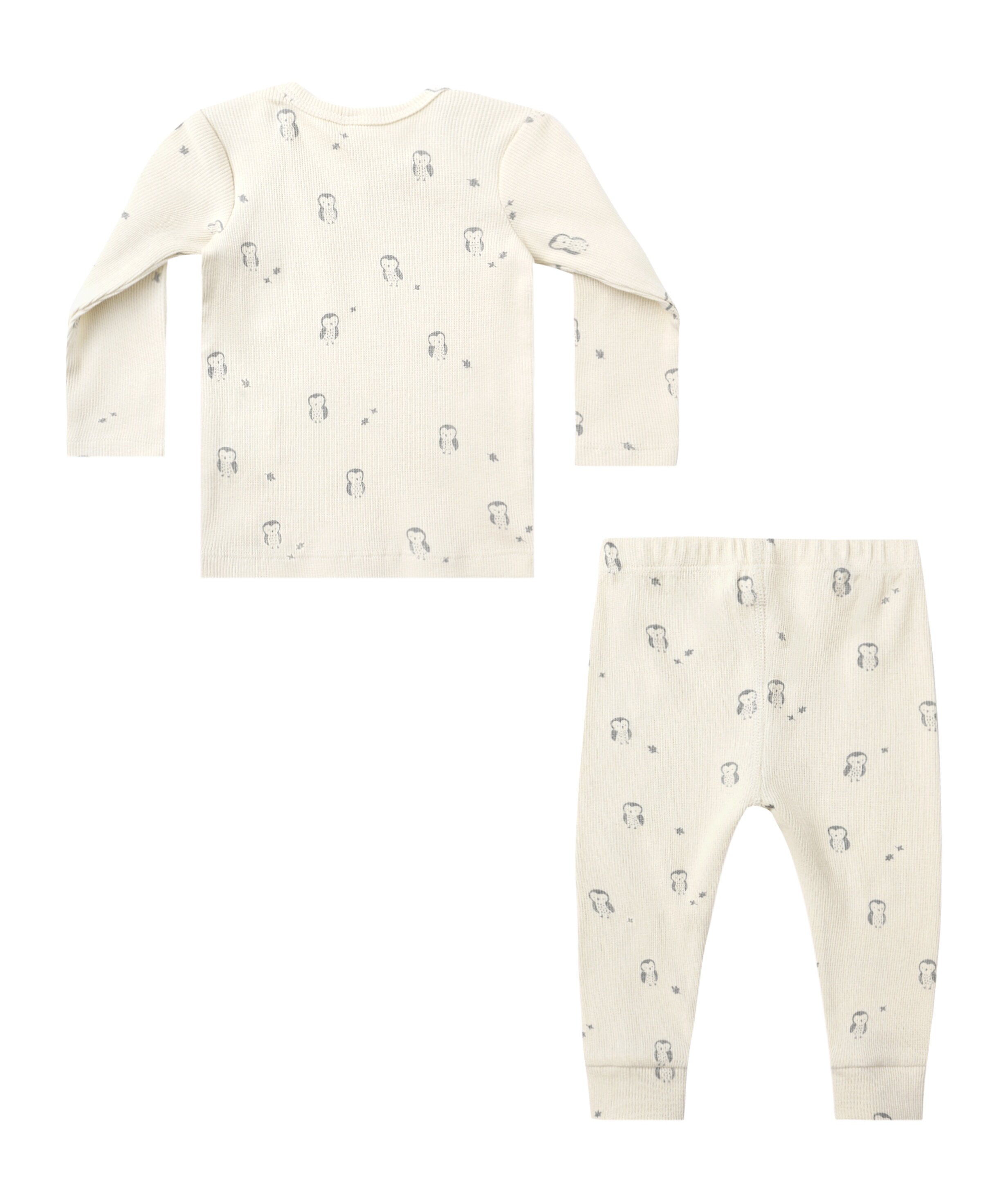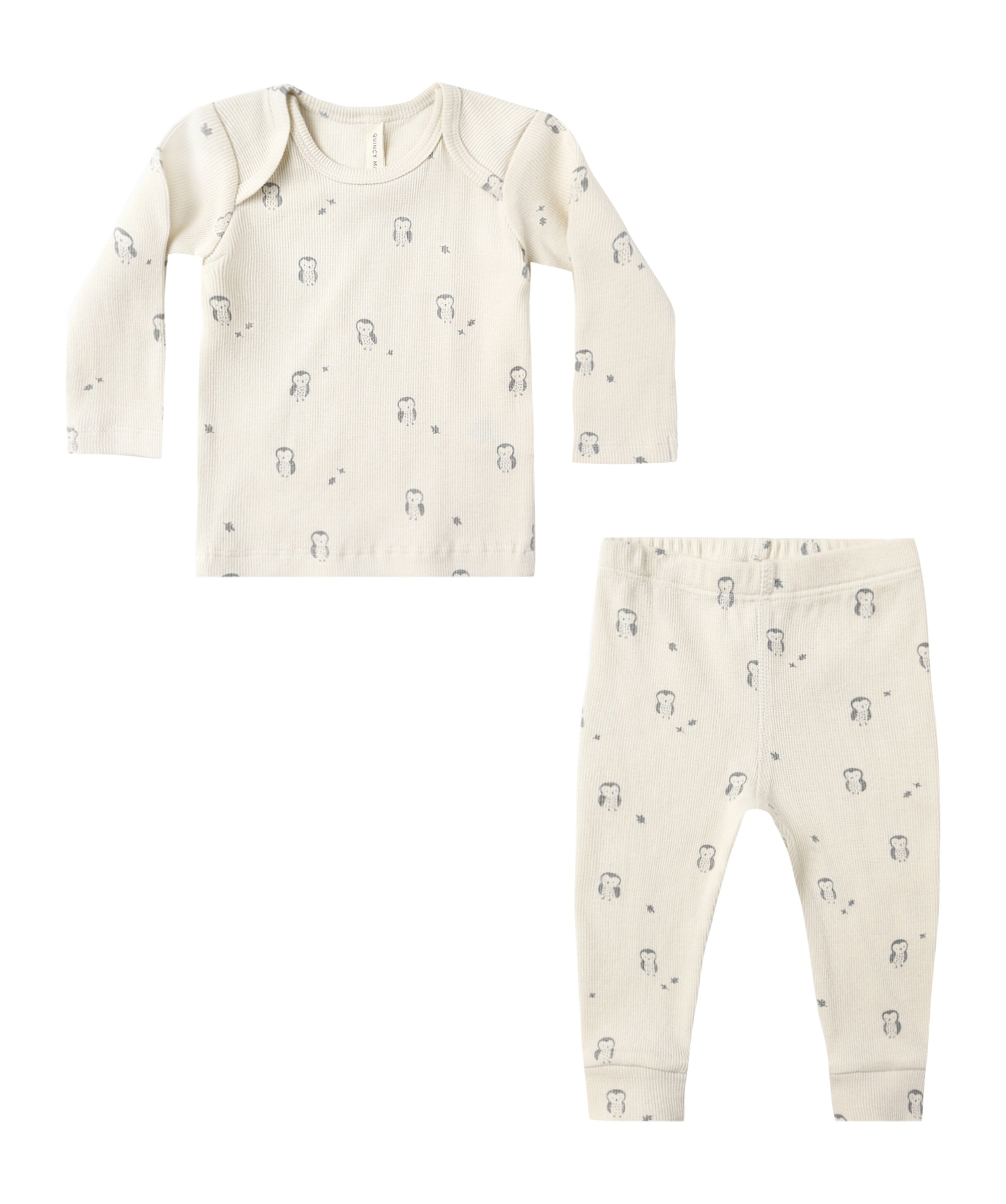 The Quincy Mae Ribbed Tee + Legging Set features a slim-fit long sleeve tee and leggings set crafted from soft, stretchy rib knit. Sizes 0-3M - 6-12M feature lap shoulders for easy dressing.