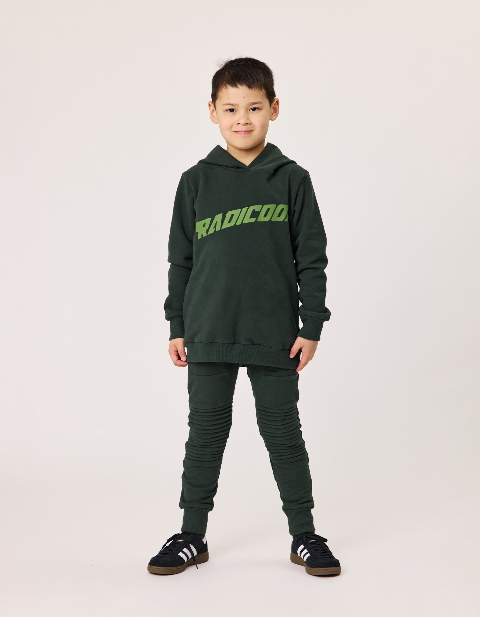 ‘Radicool’ placement print in mid-green on chest