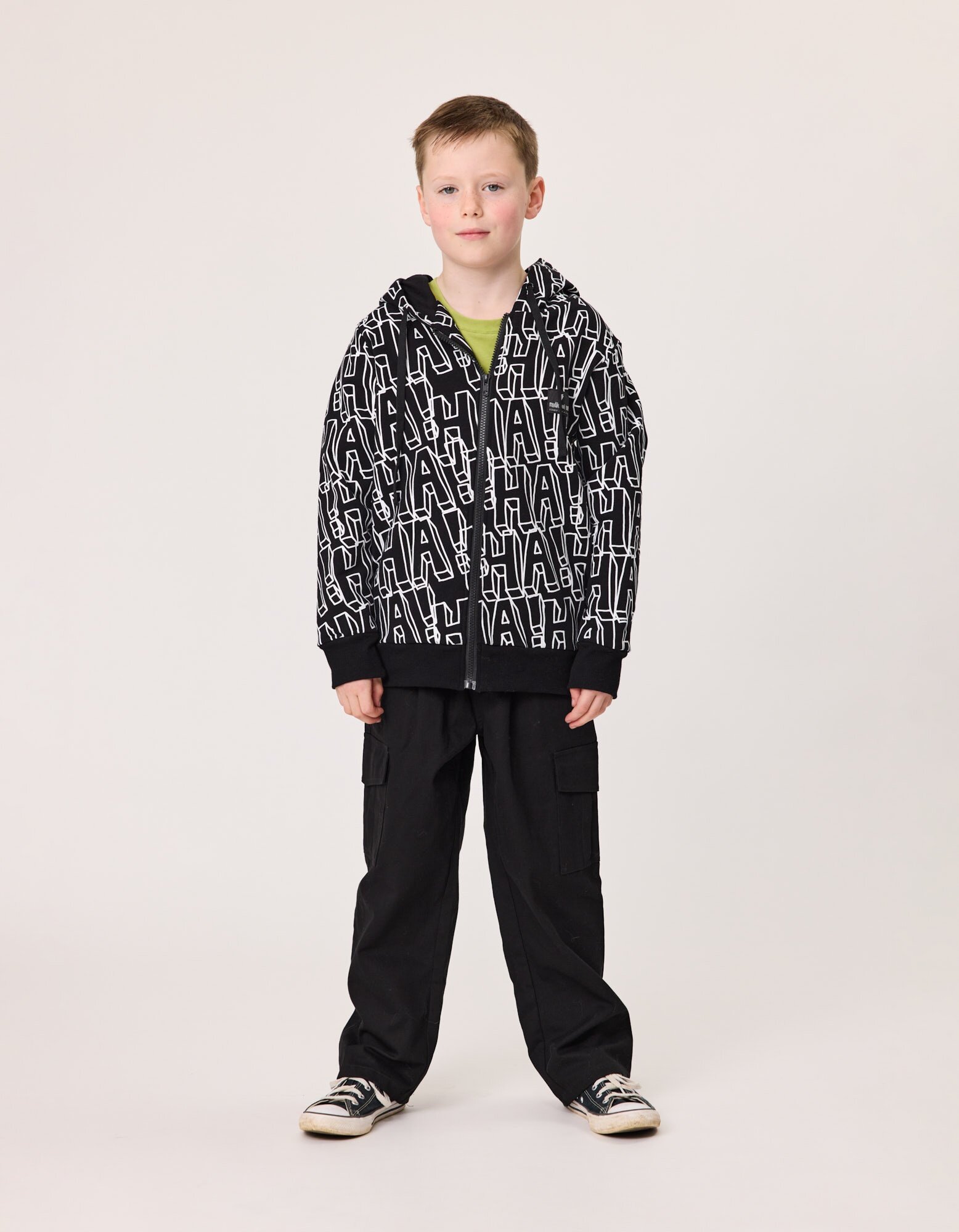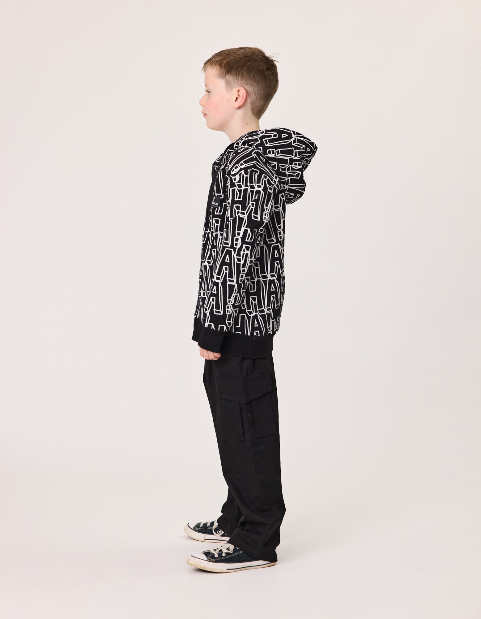 'HA!' yardage print in white