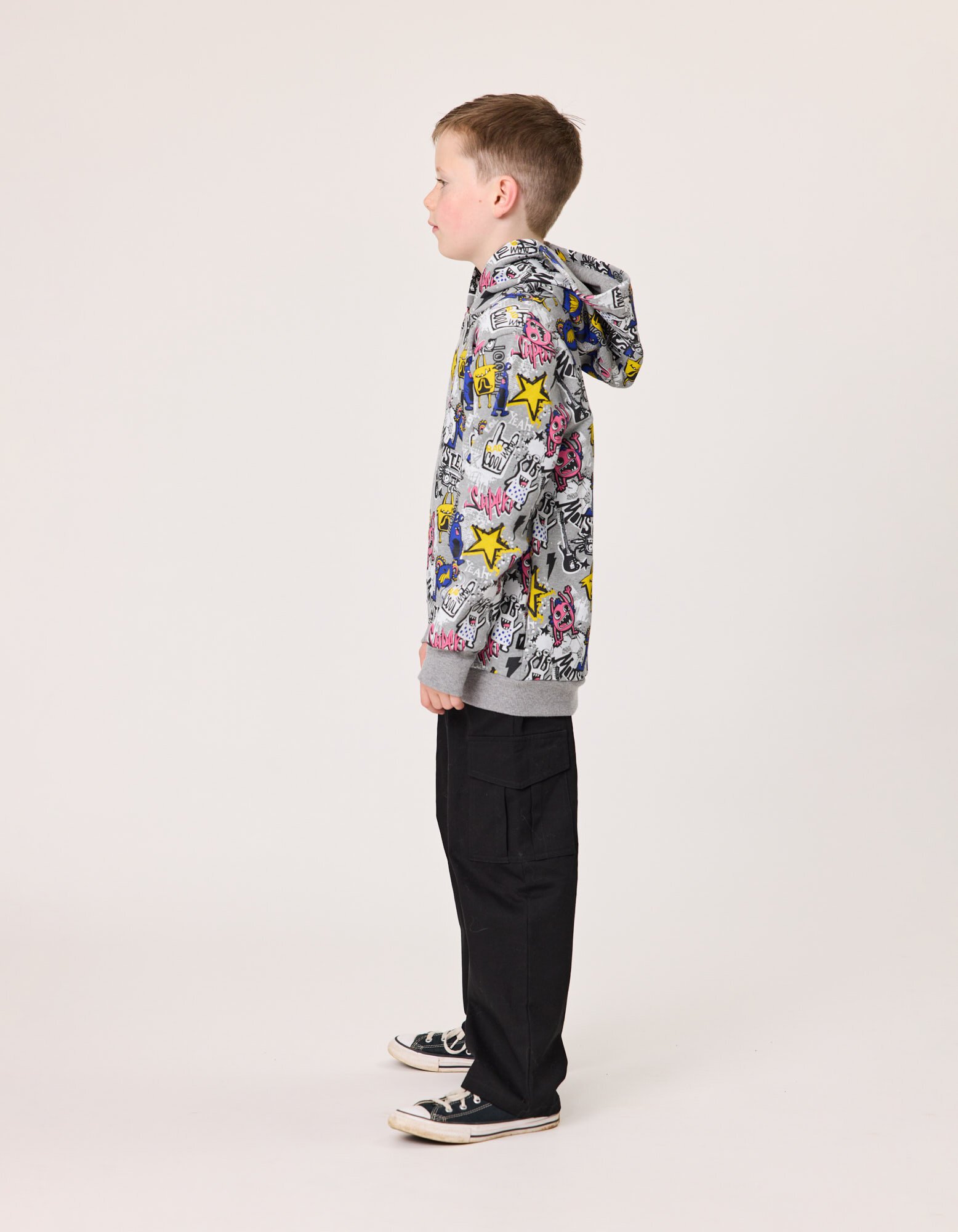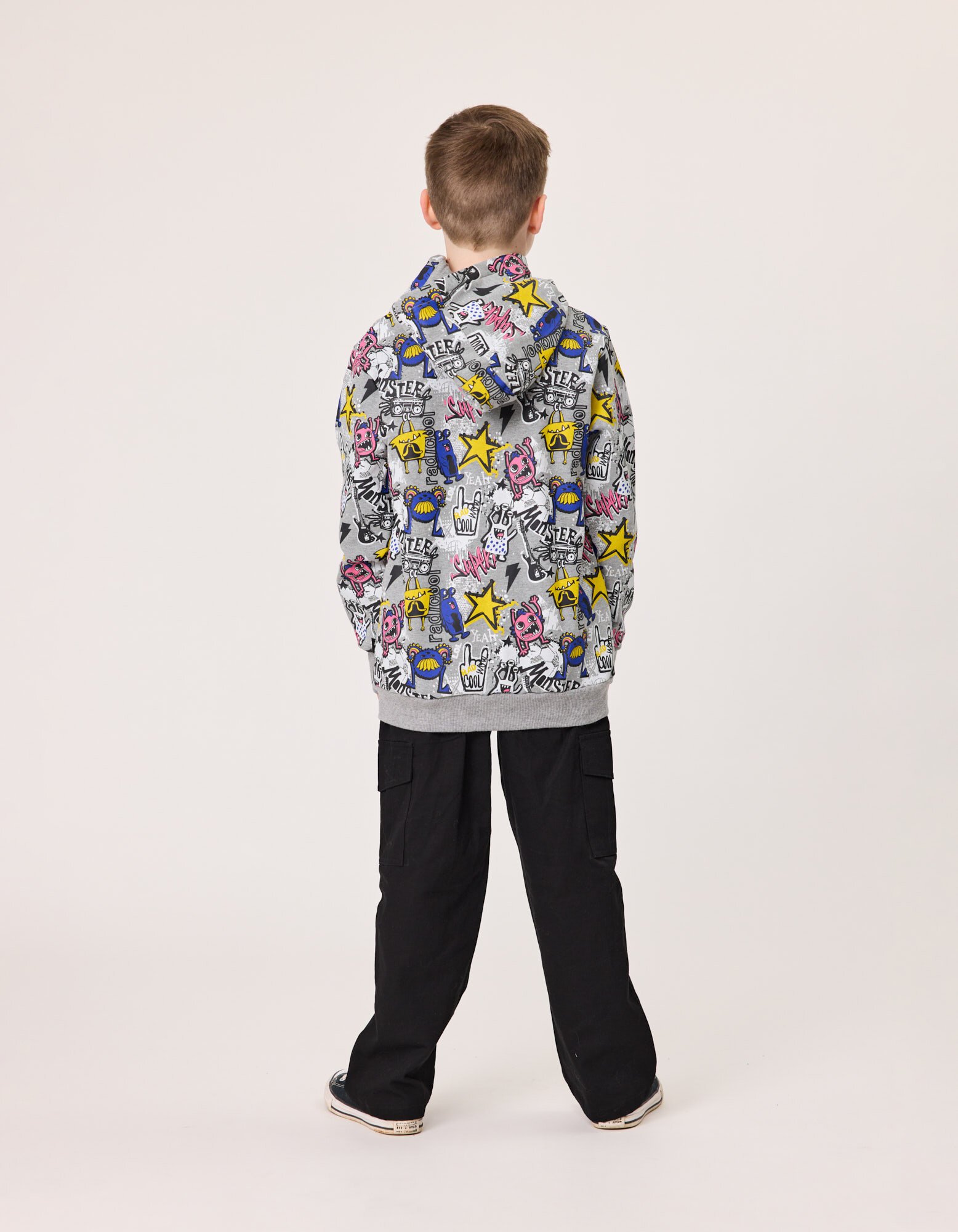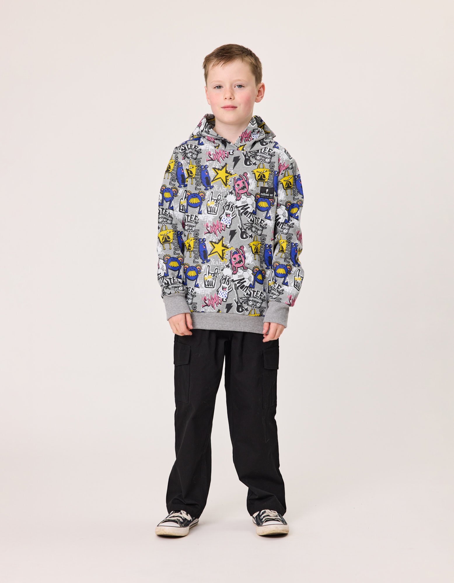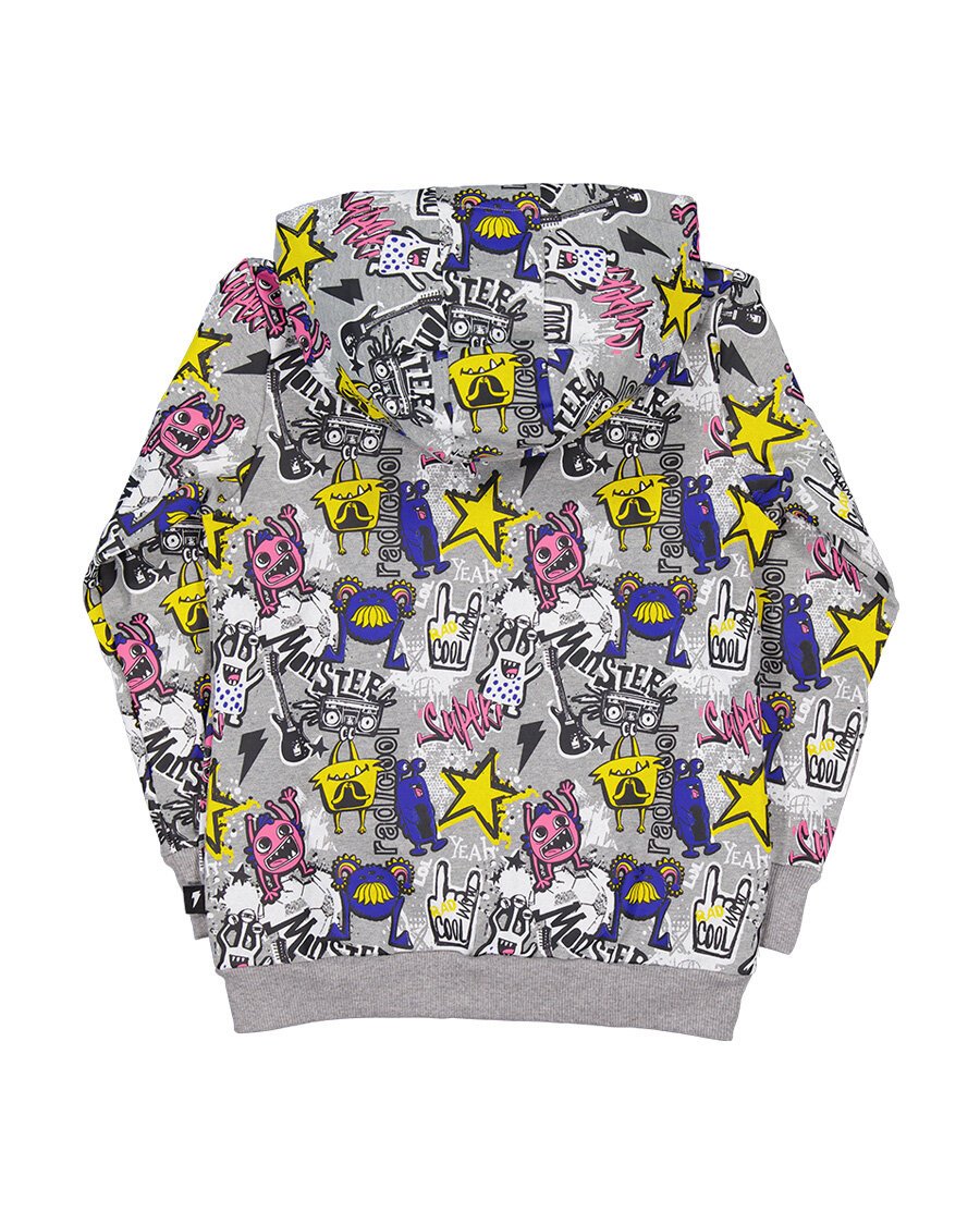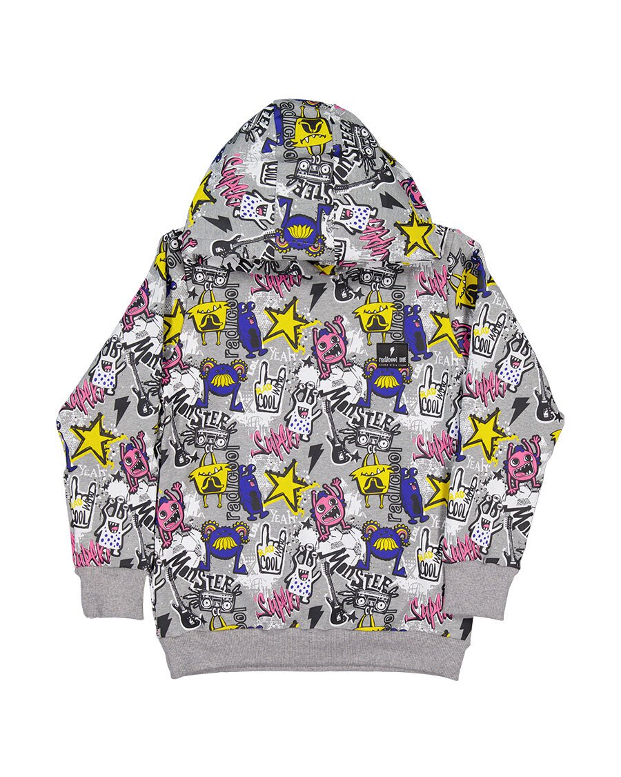The Radicool Monsters Hood is covered in funny monsters for your own funny rascal