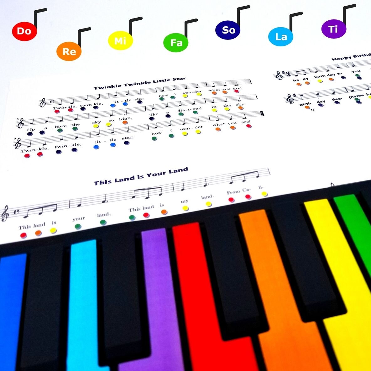 A Real Keyboard But Won't Occupy Extra Space: It is a 49-key piano that perfect for beginner to master/all ages. Promote tactile learning and hand-eye coordination and included song book let kids to play the songs by colour! Simply enjoy this well-made rainbow piano to learn or to use it for fun!