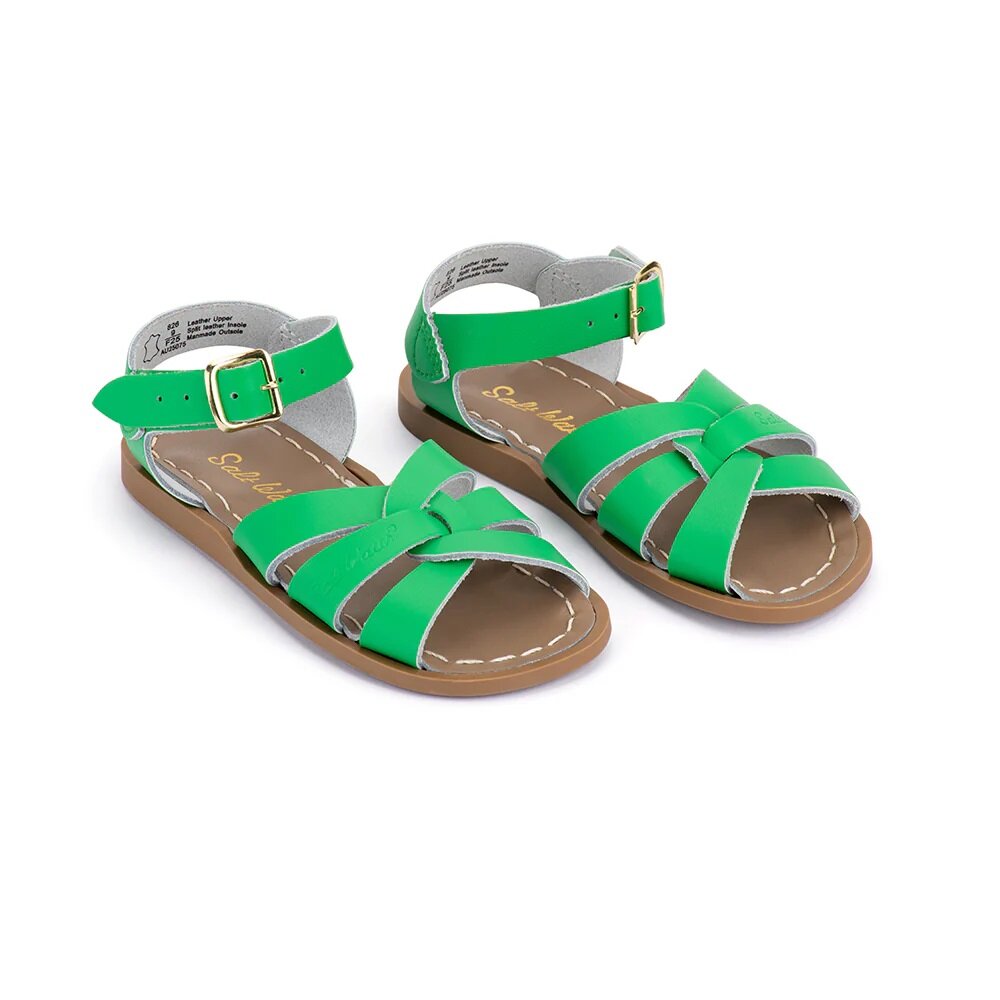 The first model to come out of Walter Hoy's workshop in 1944, the original Salt-Water Sandal is defined by its little way stitched rubber sole and plaited leather upper. All Salt-Waters come with rust proof buckles, can be worn in the water and can be handwashed with a gentle detergent. They go from childrens all the way through to adult sizes. They are comfortable, durable and beautiful... and they look awesome with everything!