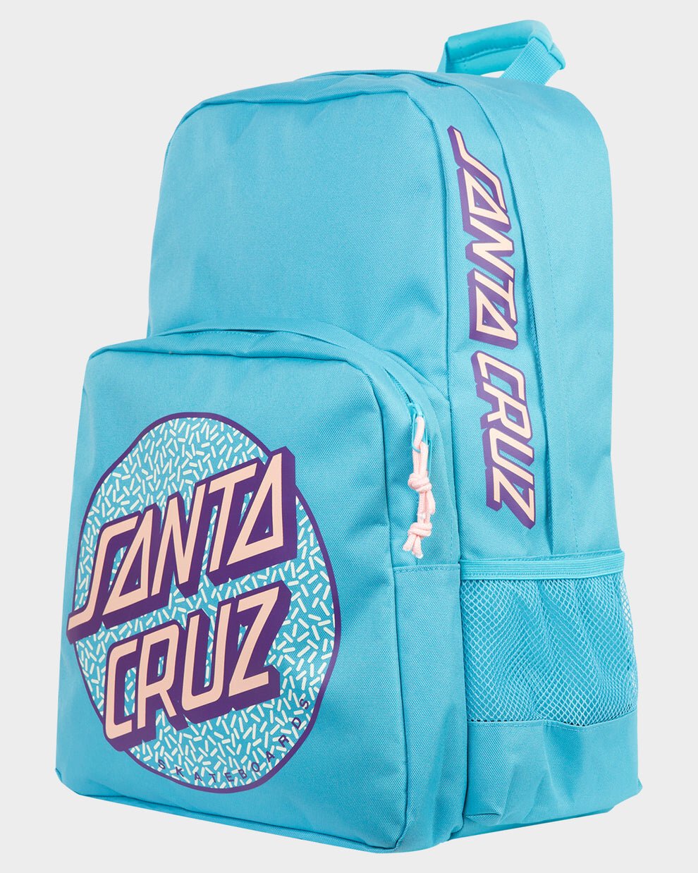 The Santa Cruz Sprinkle Dot Backpack is a standard dual compartment backpack featuring puff screen print of the sprinkle dot artwork.