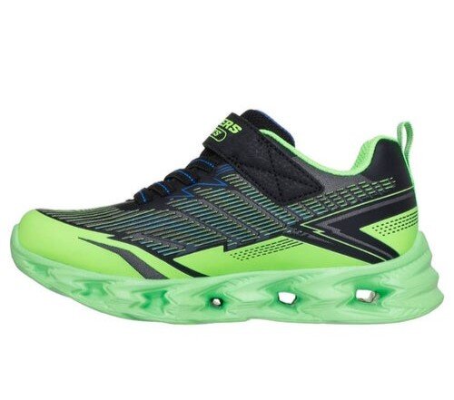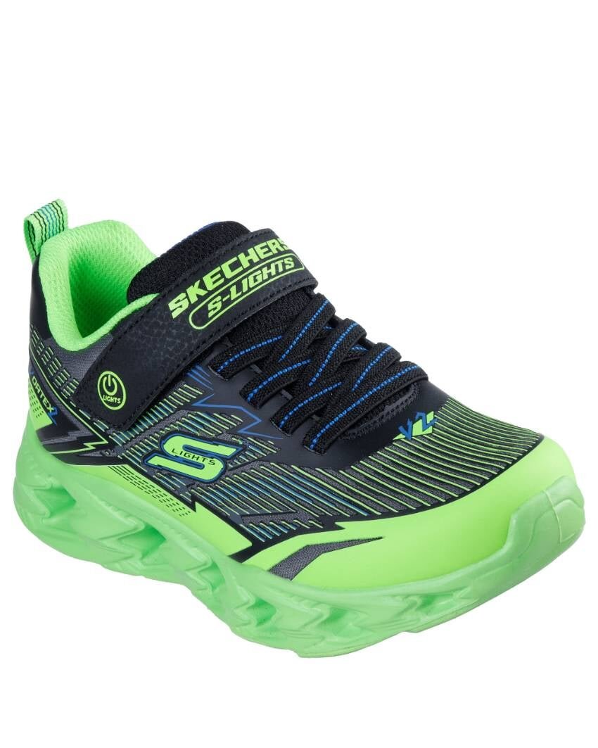 Light up the playground in eye-catching comfort with the Skechers S-Lights®: Vortex 2.0 - Veltrox. This lighted Skechers with adaptive closure design features a lightweight synthetic and mesh upper with a 3D haptic print, stretch laces, an adjustable instep strap, and a cushioned comfort insole.