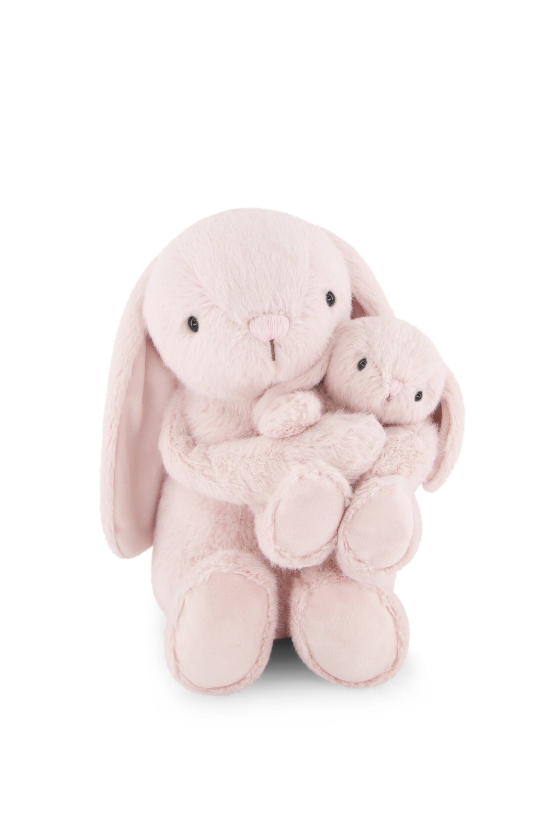 The perfect gift for your little ones to snuggle up with and love. Frankie is a 30cm mama bunny and comes together with her cutie 15cm baby. Our mama bunny's hands feature Velcro fastening so they can be separated to let baby free for play time, or kept together to hold their little darling close