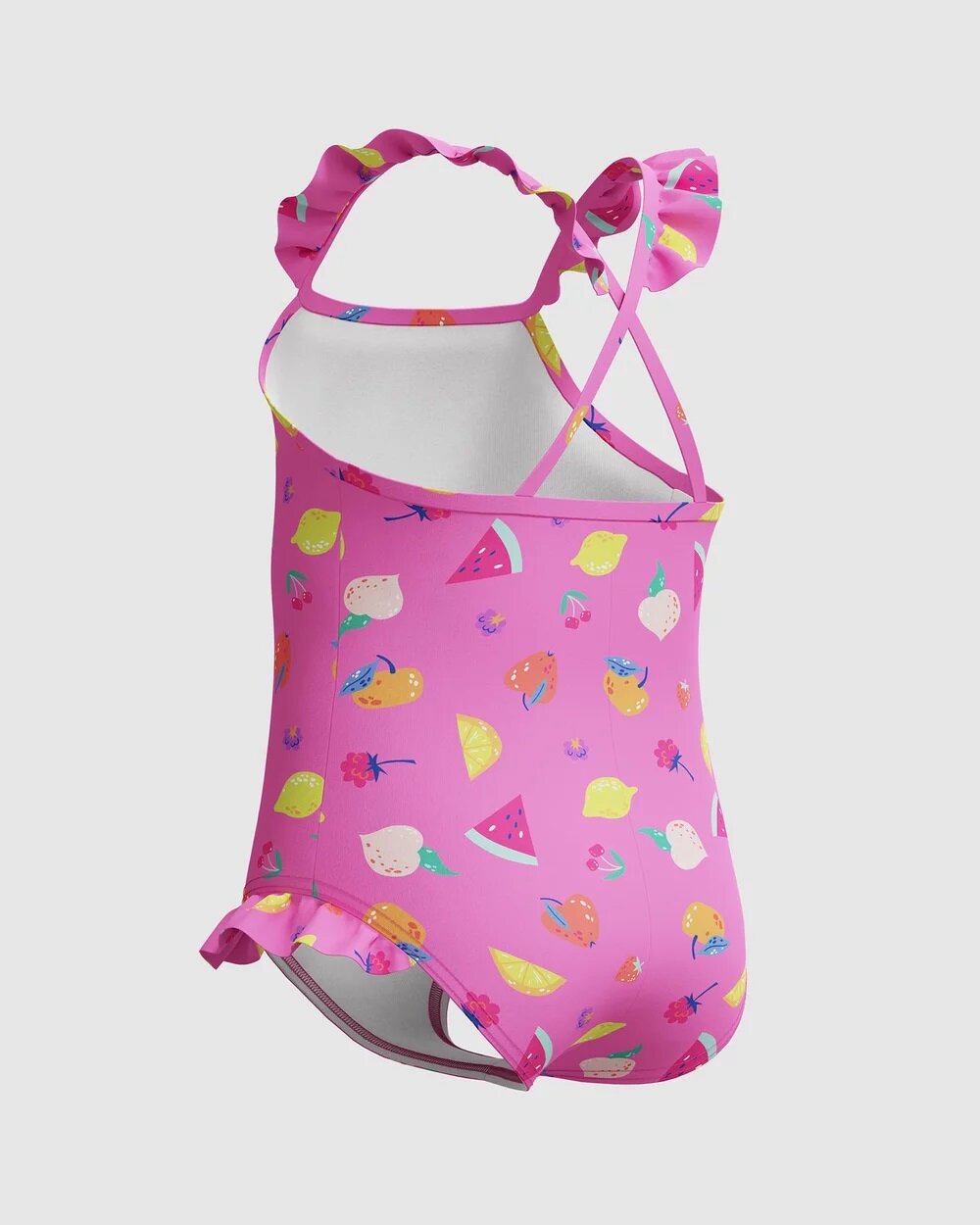 The Speedo Girls Frill Thinstrap Swimsuit is perfect for swimmers and weekend beachgoers alike. The LTS Printed Frill Thins swimsuit is designed for fun times in the water. Made for all-day comfort with Enduraflex fabric, four-way stretch and shape-retaining CREORA® HighClo™, it resists chlorine and pilling for lasting durability. The full-coverage design includes thin straps for freedom of movement and a frill trim.