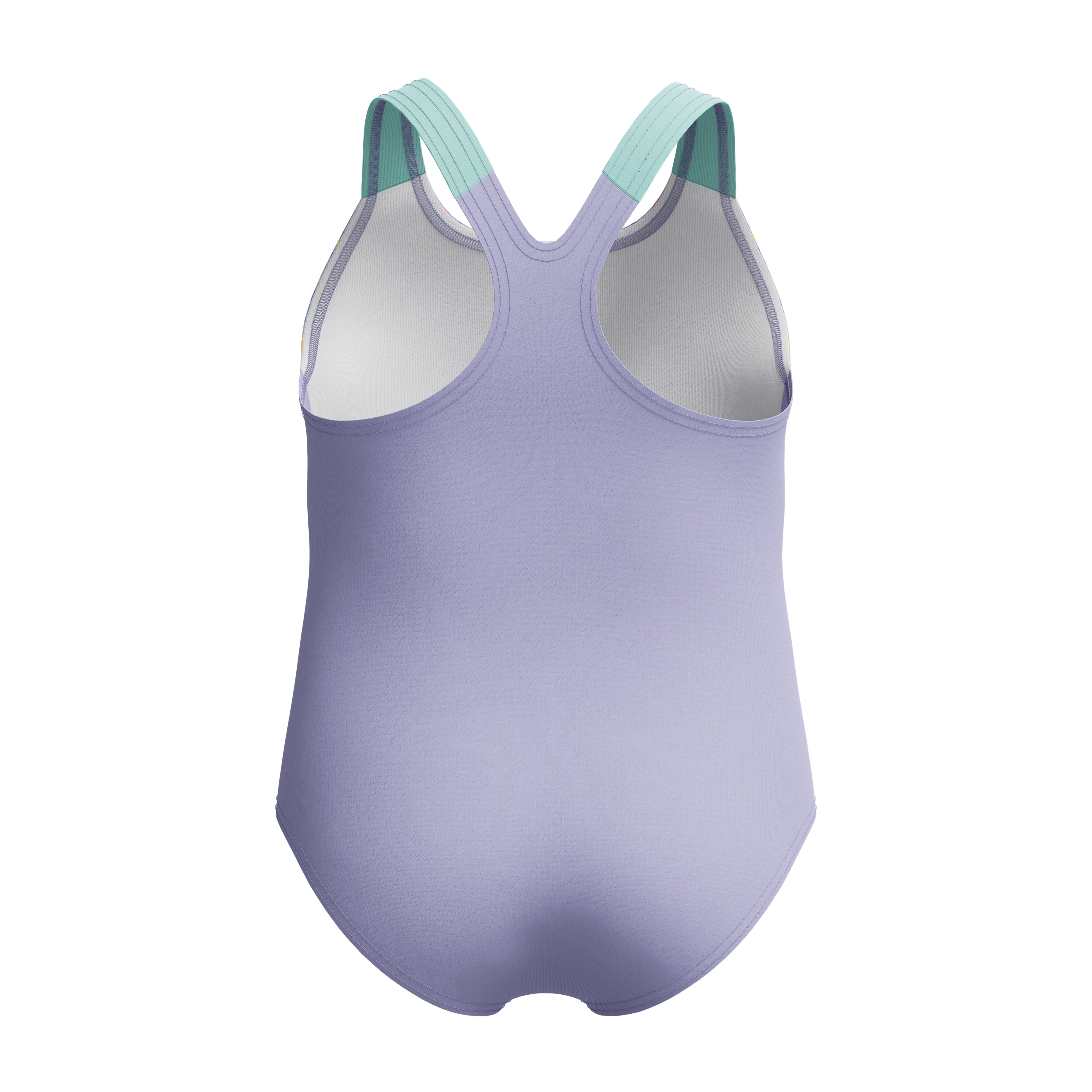 Designed for young explorers, the Speedo Print Racerback Swimsuit offers all-day comfort for fun times in the sun. Made from durable Endurance+ fabric, it resists chlorine and pilling to provide lasting performance. Comfy racerback straps stay secure while the full-coverage design protects delicate skin. Body made of 53% recycled polyester, 47% PBT.