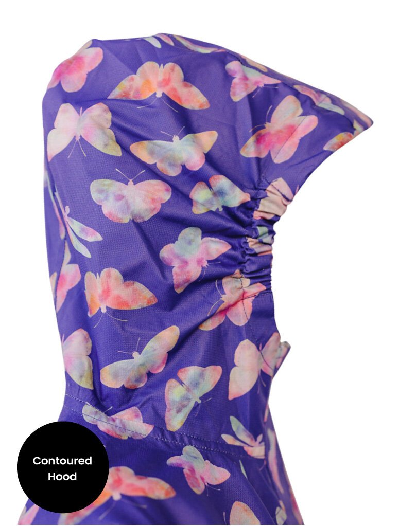 Hood is elasticated for a snug fit, with a built in peak to shield the face.