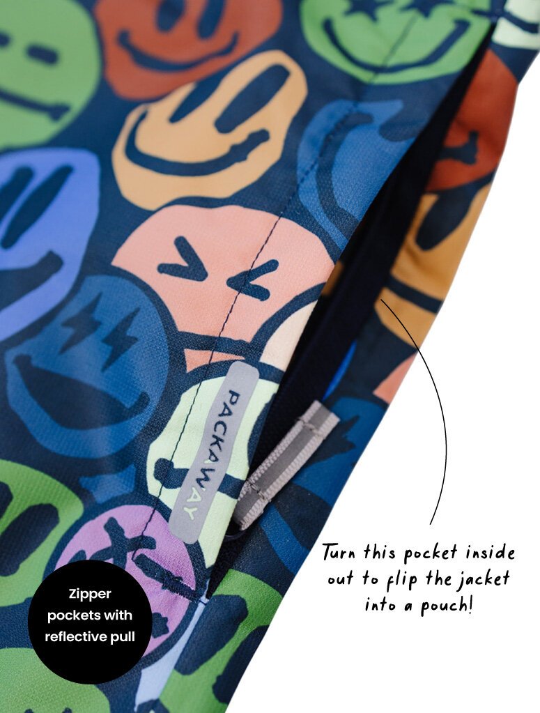 Unlined and lightweight, pack it into its own pocket to make a handy pouch.
