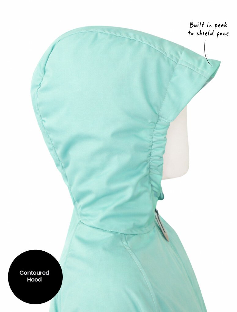 Stretchy inner handwarmer cuffs with thumbholes to keep hands protected. Keep them down in the cold, or roll inside the outer sleeve in the rain.
