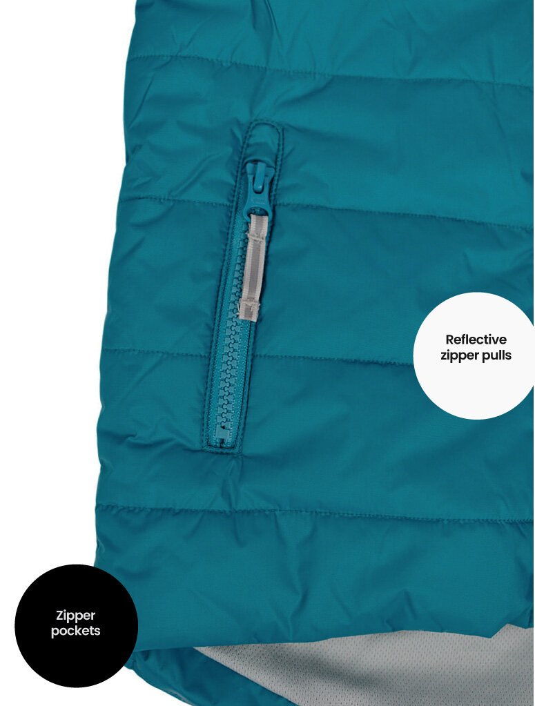 Fleece lined pockets with zippers for extra cosy hands when it's chilly outside.