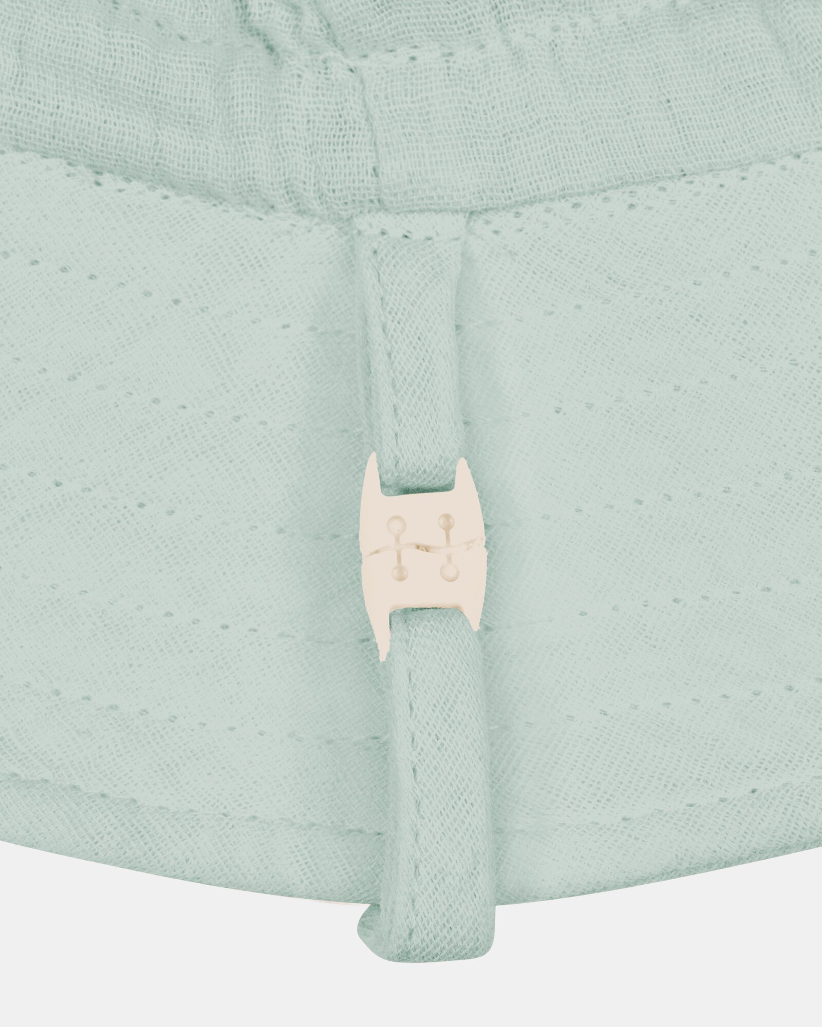 Toshi Bell Hat Sammy is crafted from the finest quality certified 100% organic cotton yarn. Toshi Bell Hat Sammy is a flattering bell shaped hat. The cheesecloth fabrication features a supremely soft and gently nurturing texture. The UPF 50+ UV rating indicates maximum sun protection. A head tie with soft cotton toggle creates adjustable sizing. The chinstrap with soft cotton toggle secures the hat and offers ease of wear. The security release clasp on the chin tie is designed to enhance wearer safety. The sunhat is fully lined for increased comfort.
