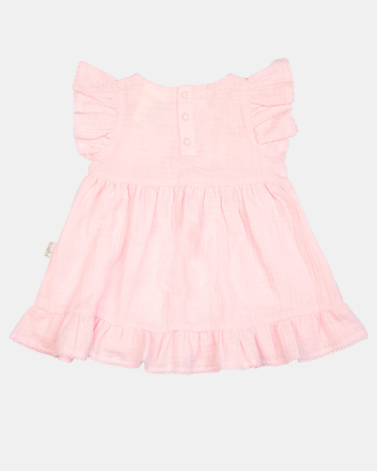 Toshi Baby Dress Sammy is crafted from the finest quality certified 100% organic cotton yarn. The cheesecloth fabrication features a supremely soft and gently nurturing texture. The classic colours create wardrobe staples, and are ideal for layering and transeasonal styling. The A-line shape is flattering and comfortable, with space for freedom of movement. Feature frill creates a playful and charming touch. The dress has back press studs for convenient dressing. The beautiful Toshi Baby Dress transitions effortlessly from casual occasions to special celebrations.