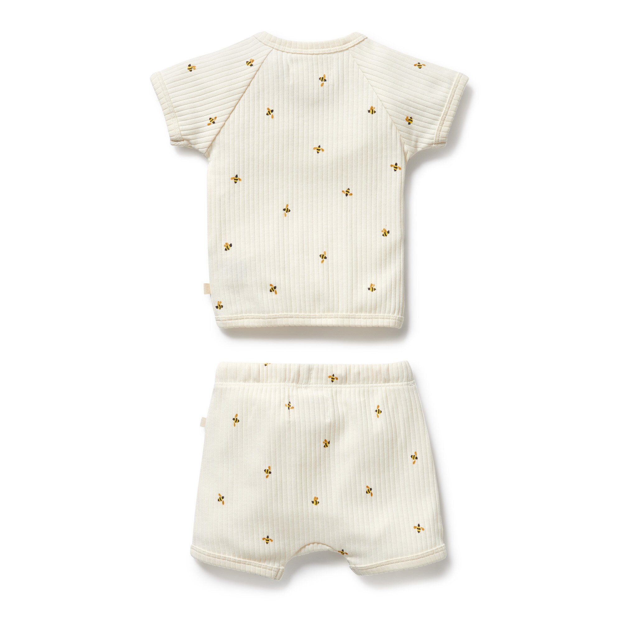 This Wilson & Frenchy Bee Mine organic cotton kimono set is a newborn essential, and a great unisex gifting option as we head into warmer temperatures. Made from beautifully soft organic cotton, it's gentle on delicate skin and perfect for everyday wear. The wrap-style kimono top secures easily with a side tie, making dressing fuss-free for little ones. Paired with soft, elasticated shorts for all-day comfort — this set is as practical as it is adorable.