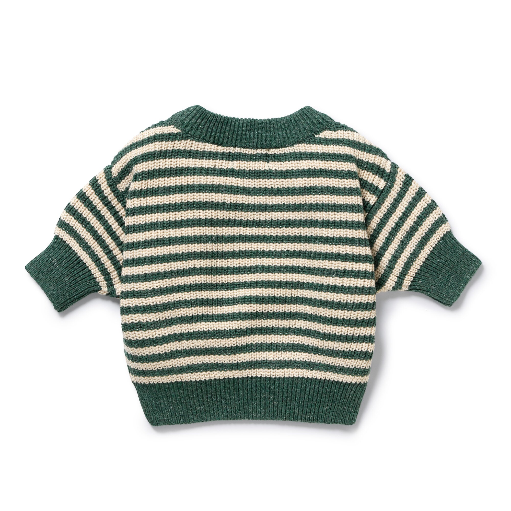 Stay cosy and cute with this chunky rib knitted jumper by Wilson and Frenchy. Made from a luxurious blend of organic cotton, wool, and bamboo, this roomy fit jumper will keep your little one warm and stylish. With ribbed cuffs and neckline, it's the perfect choice for babies and kids.