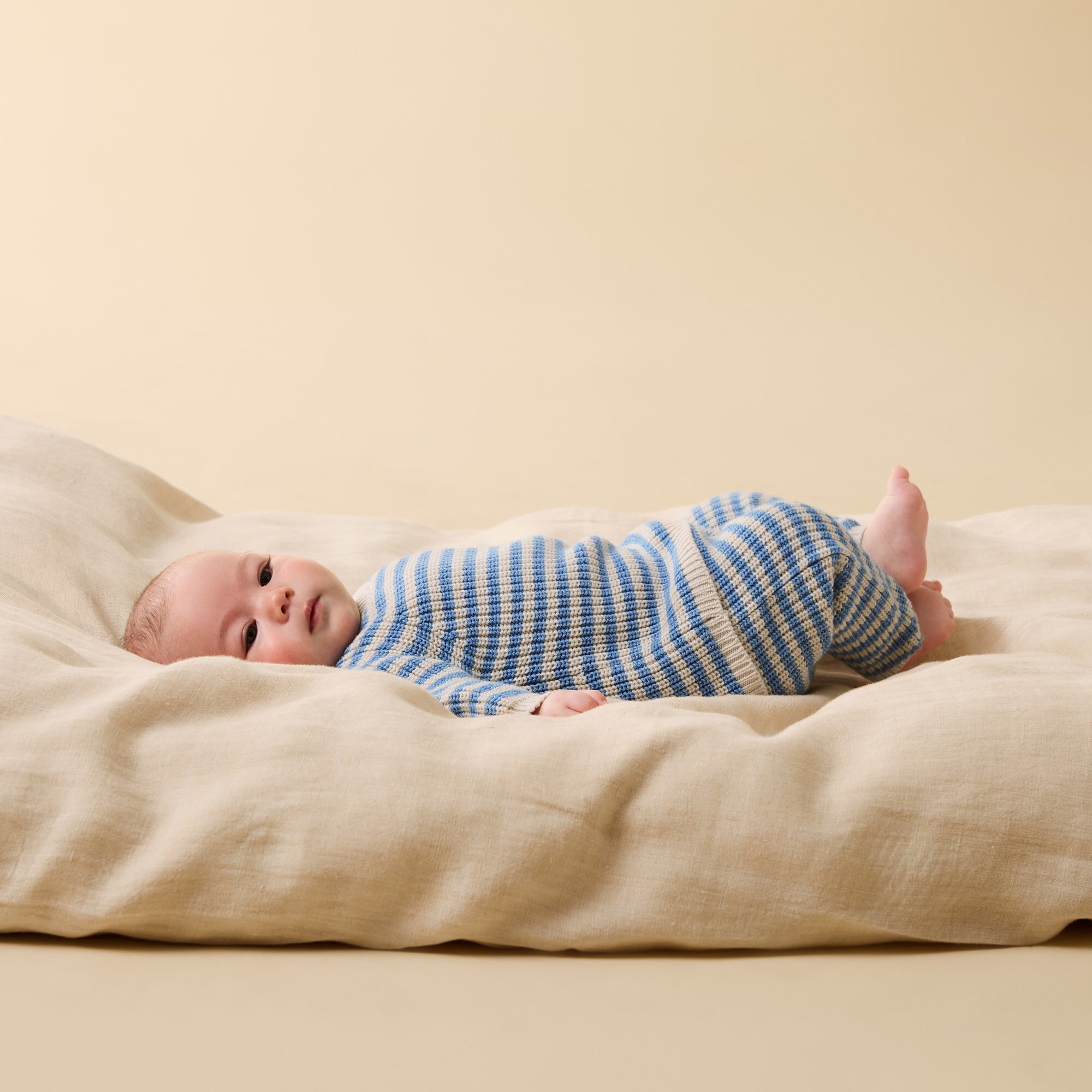 Keep your little one warm and cosy with these striped knitted baby leggings from Wilson and Frenchy. Made from a luxuriously soft blend of organic cotton, bamboo, and wool, these baby leggings are perfect for everyday comfort. The gentle elastic waistband ensures a snug fit without digging into little tummies, while the classic stripe design adds a playful touch to any outfit. Ideal for layering during the cooler months.