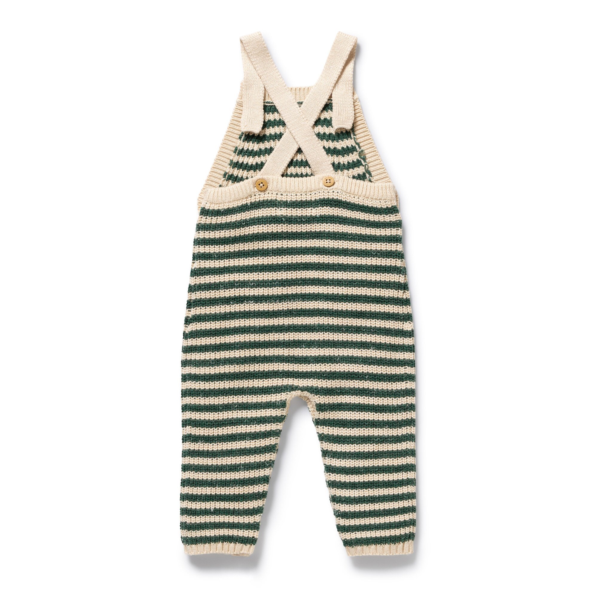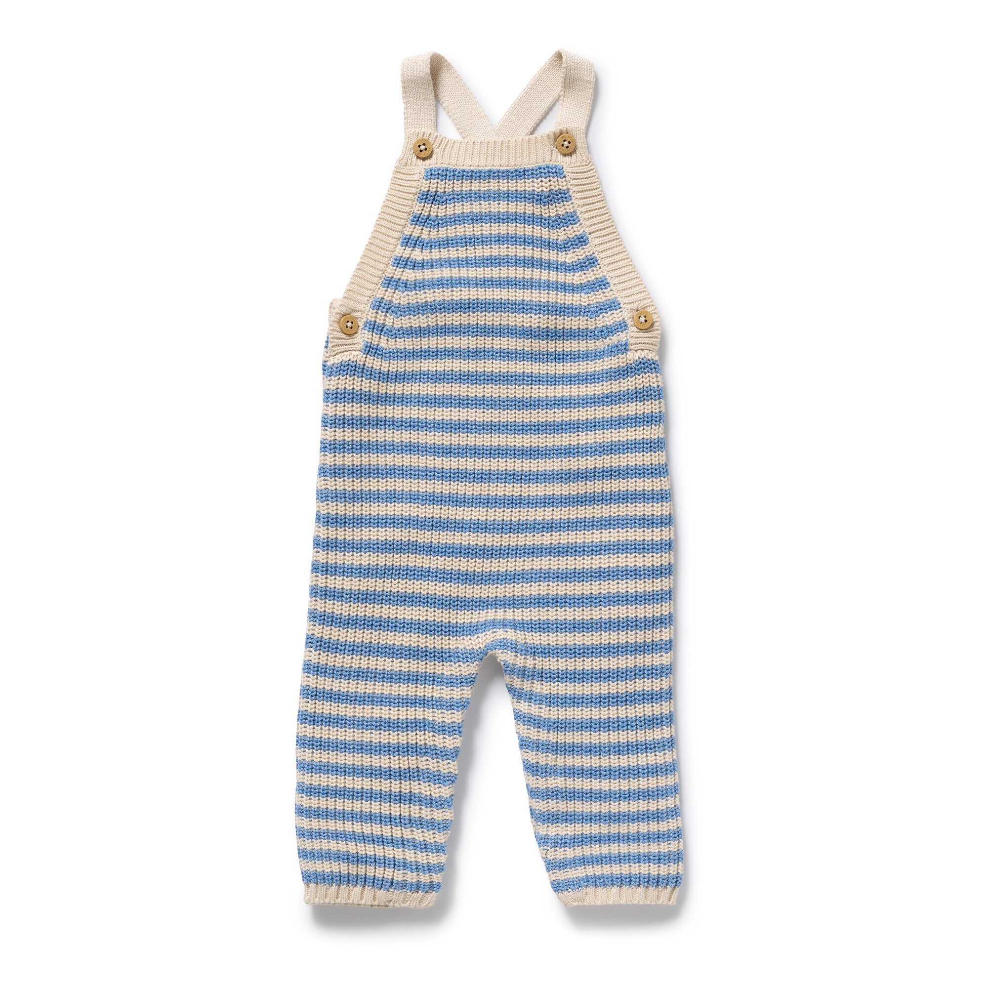 This full-length knit overall from Wilson and Frenchy features button-up shoulder straps and a snap leg opening for quick and easy nappy changes. Made from a beautiful blend of cotton, bamboo, and wool, it's soft, warm, and perfect for cooler days. The classic stripe design adds a timeless touch, making it a versatile piece for your little one's winter wardrobe. Layer over an organic long sleeve top for an effortlessly cute look.